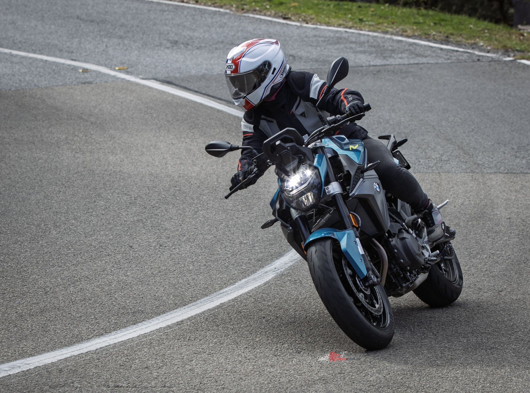 My testbike has been fitted with Pirelli Diablo Rosso IV Corsa tyres, a high-quality choice that aligns well with the 2025 F 900 R’s sportier geometry and handling tweaks. Compared to the Michelin Pilot Road 2CTs that were fitted to the launch bikes in Spain back in 2020, the Pirellis are probably better suited to the 2025 bike’s lighter wheels and revised ergos, and there’s heaps of feedback.