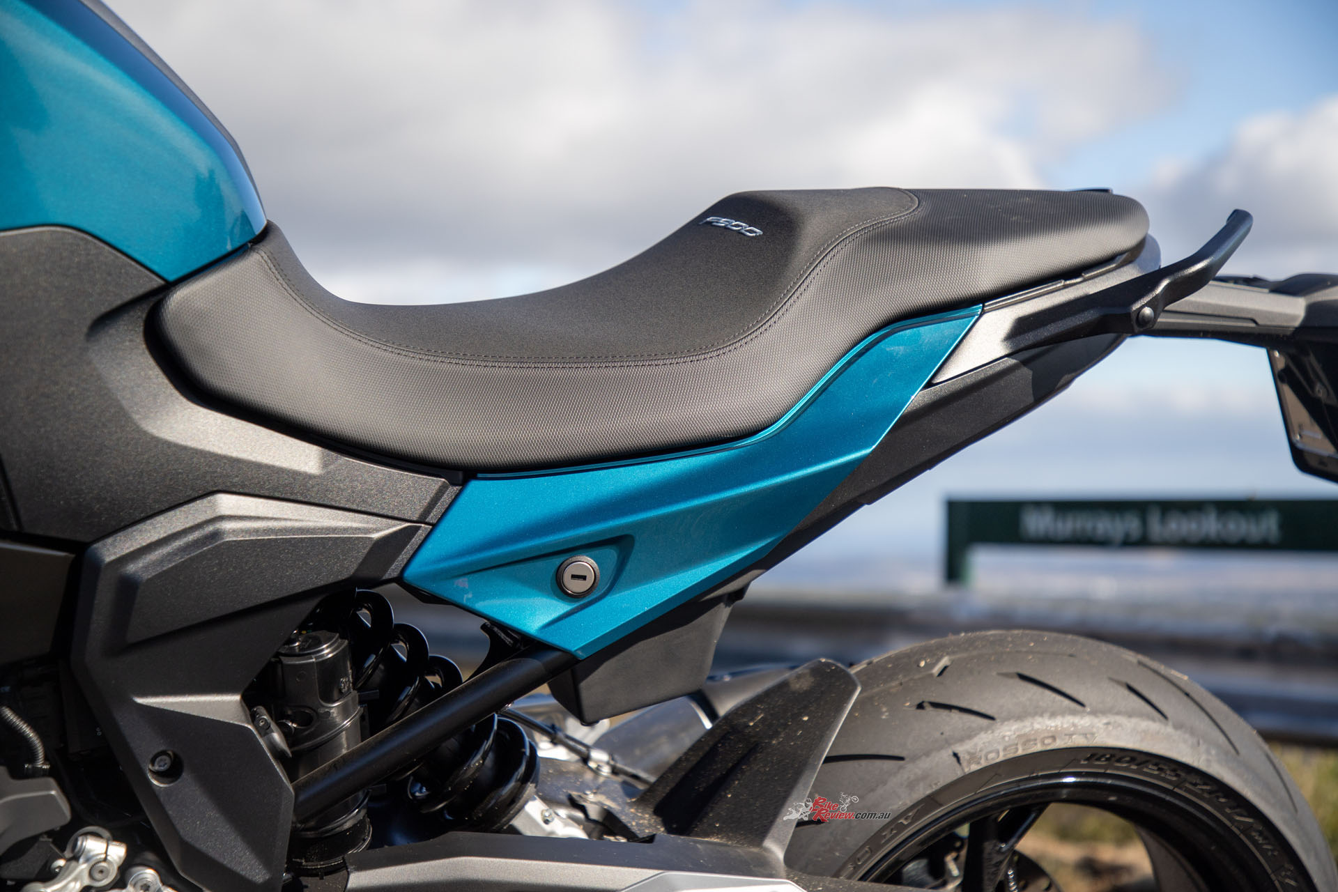 The as-tested base model comes in just a single colour option, called Snapper Rocks Blue Metallic, and is equipped with lean-angle sensitive ABS and traction control, a 6.5-inch TFT display with connectivity, LED lighting throughout, Dynamic Brake Light, Riding Modes Pro, a quick-shifter, heated grips and a 12-volt socket. It carries a ride-away price of $17,285.