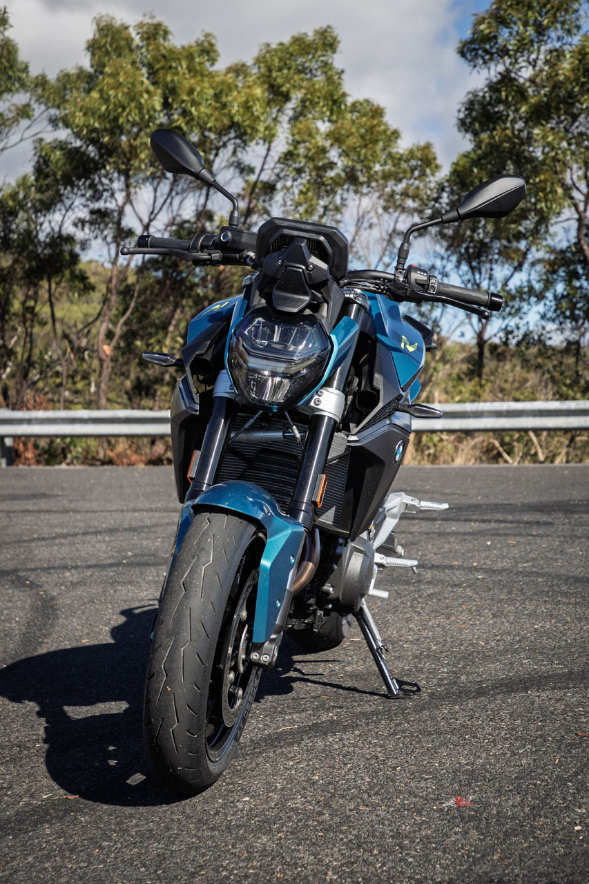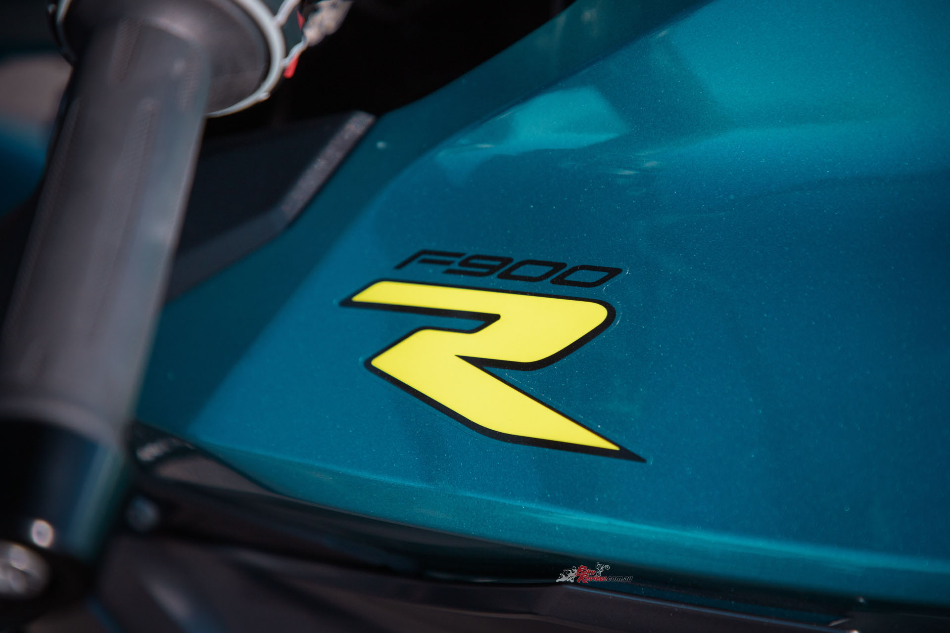 From the side, the F 900 R’s sharper tank lines, slimmer tail and compact stance give it an sporty profile.