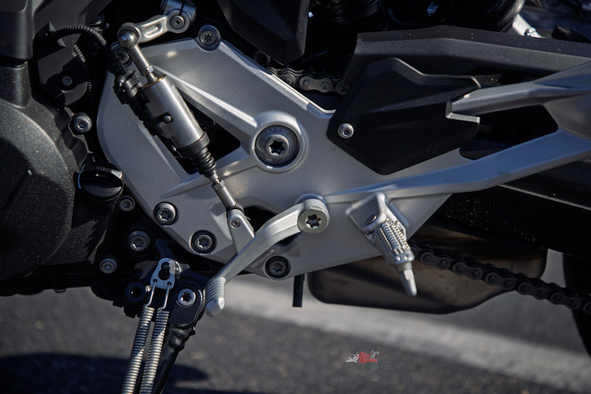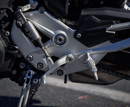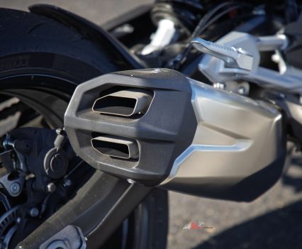 The standard quick-shifter is another highlight. Really well calibrated, it shifts cleanly through the six-speed gearbox and feels especially precise and satisfyingly smooth when you’re winding it up through your favourite set of bends. The 13-litre fuel tank is about right for the bike’s design brief, but with a consumption of 4.2 L/100 km, it should be good for a real-world range of around 300km between fills which is respectable for a nakedbike.