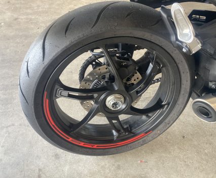 The CST ADRENO HS tyres were a pleasant surprise, offering plenty of grip and fast warm-up times on the track, but they did wear quickly. On the road, they performed admirably, providing confidence-inspiring feel even on cold mornings. The 110/70 – 17 front and 150/60 – 17 rear sizes are common, so replacing them with your favourite brand is easy.