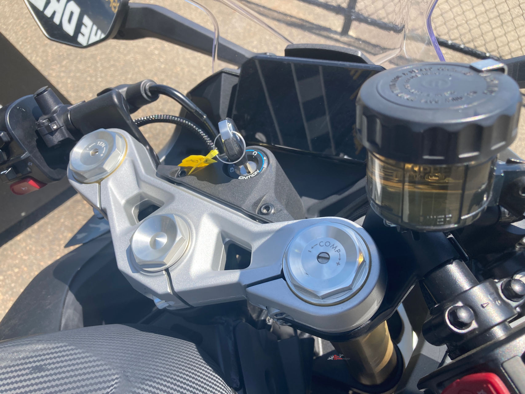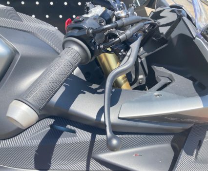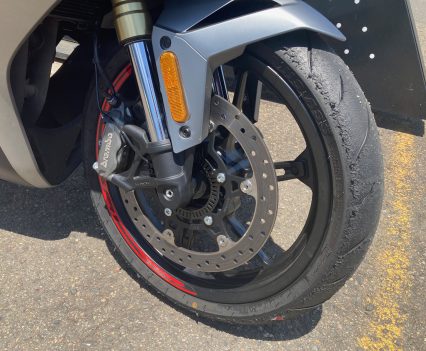 On track, however, I did experience fade after three or four hard laps in a row, with the lever coming back towards the bar. It’s a common issue with single-disc setups under heavy repeated braking, so trackday riders may want to look at pads, fluid upgrades, or a master-cylinder swap.