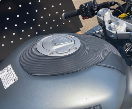 Fuel capacity is 14L, giving decent range on the road, though the bike was very thirsty on track. You’ll be filling up more often if you’re doing extended track sessions.