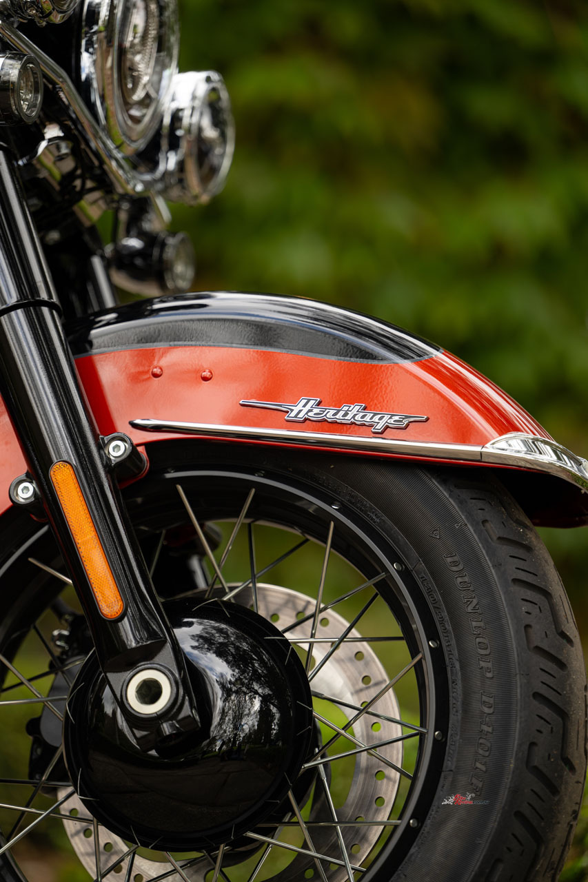 It is the seamless integration of new and old which makes the Heritage so special to the Harley faithful. That unwavering character which again is finished in some stunning colour options including the Whiskey Fire/Vivid Black combo our test bike was adorned in.