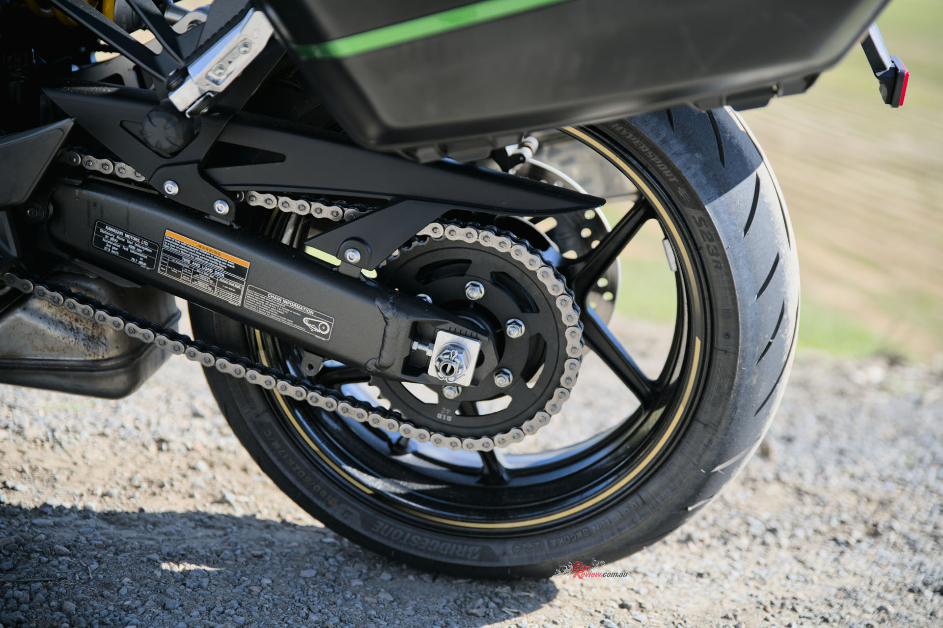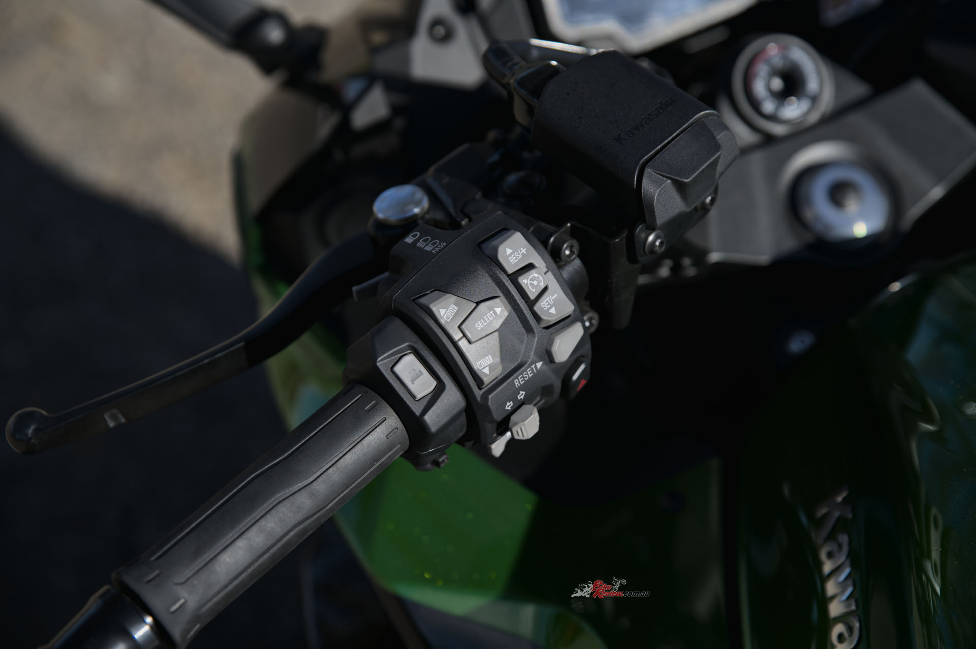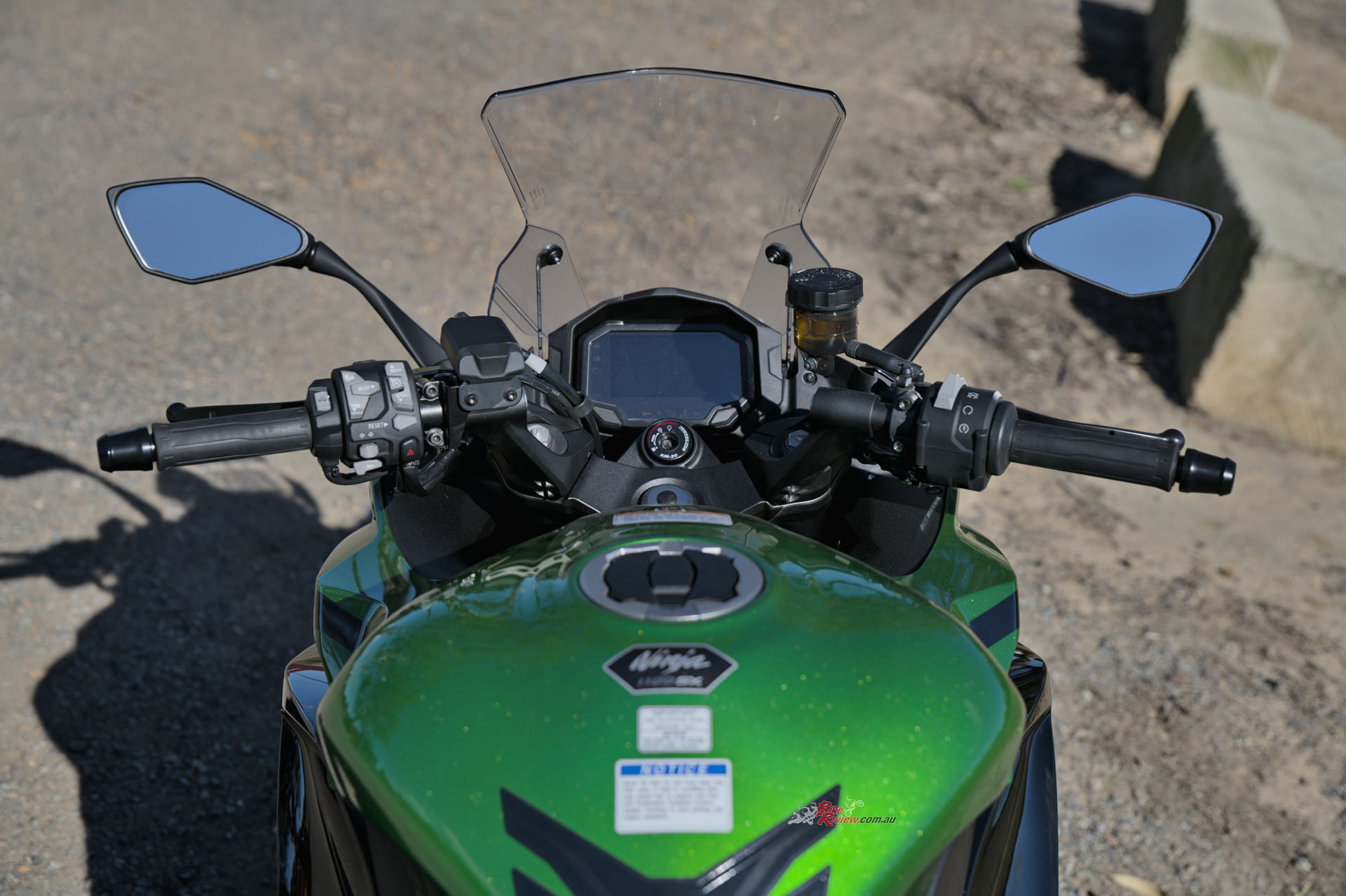 Fuel economy has improved, helped by those longer gears, and with a 19-litre tank I managed over 300km between fills without trying. Combined with cruise control and superb wind protection (screen aside), the Ninja feels like a genuine all-day ride. Still, at 5.6L/100km, it’s in car territory for fuel use.