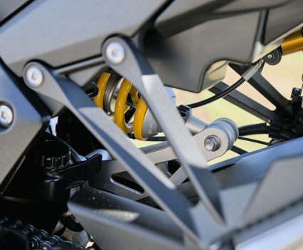 At the front, the 2025 model features 41mm KYB fully adjustable forks. This SE variant comes equipped with an Öhlins S46 rear shock with remote preload adjustment. It’s a comfortable set-up for longer rides and capable enough for spirited runs through the twisties, it handles like a big sportsbike.