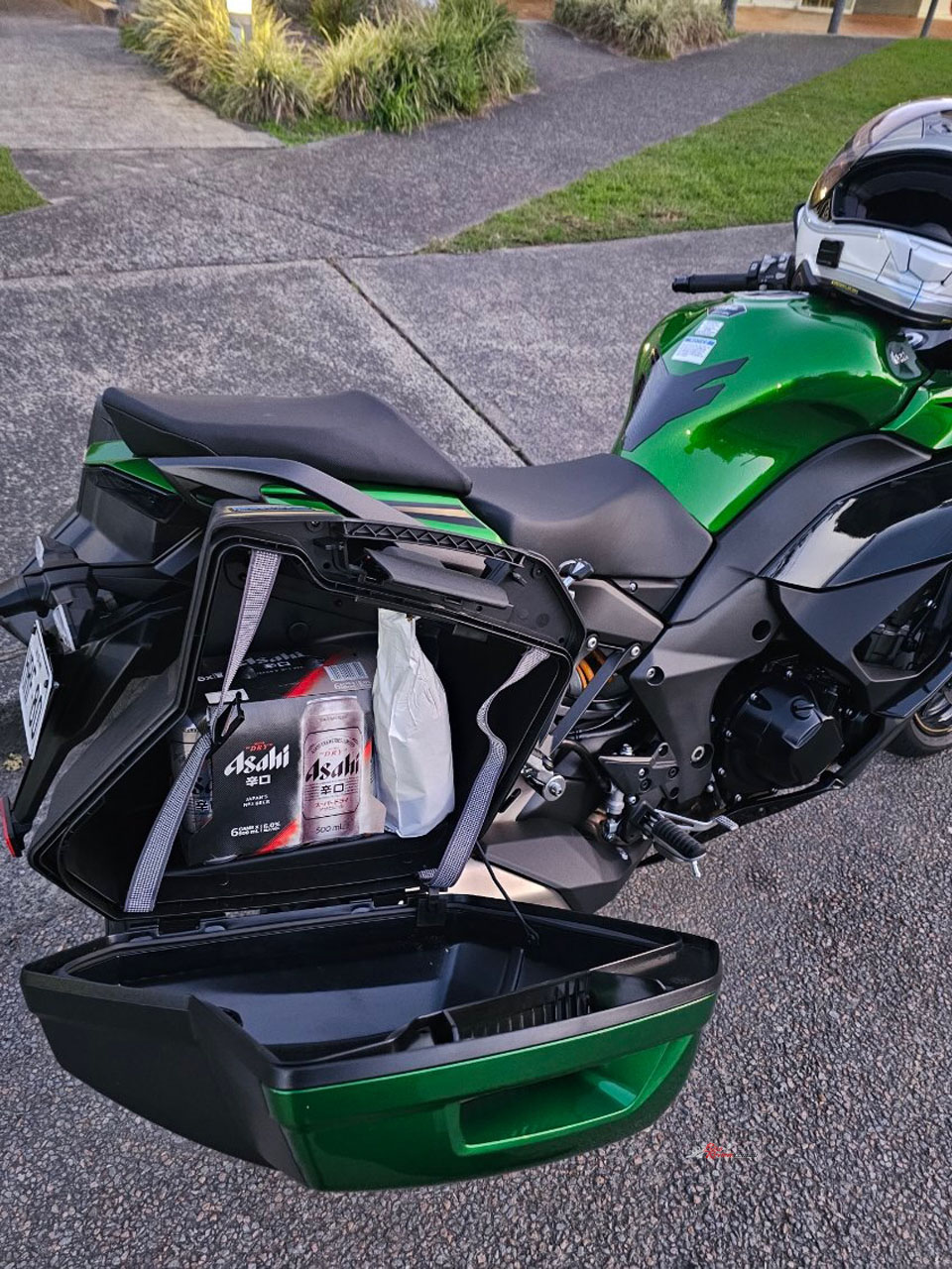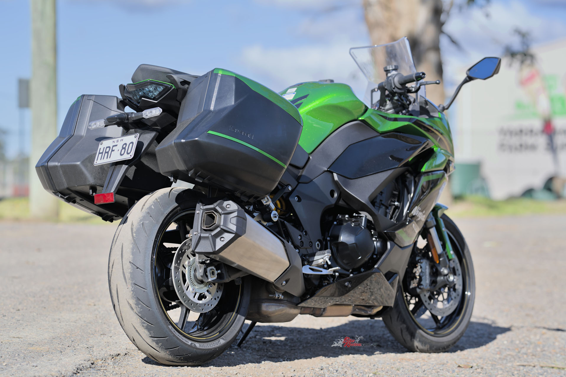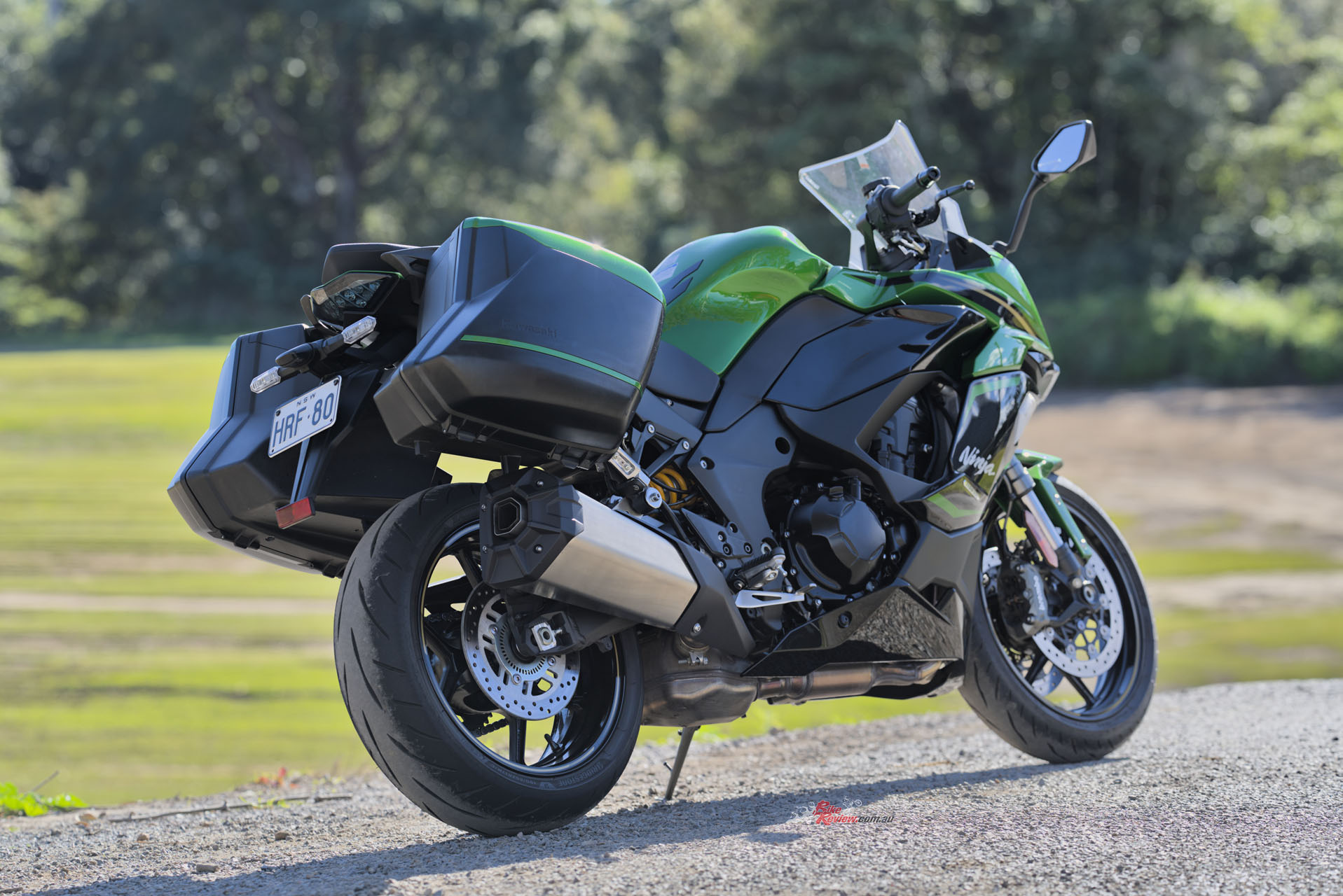 Build quality is excellent, with refined paintwork and bodywork that feels premium. Styling tweaks give the 1100SX SE a sharper Ninja family look, closer to the ZX-10R and ZX-6R, while still maintaining its touring practicality. The single-sided muffler cleans up the profile, and integrated pannier mounts mean the bike looks good with or without luggage fitted.