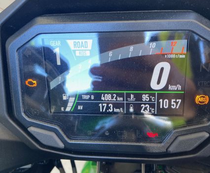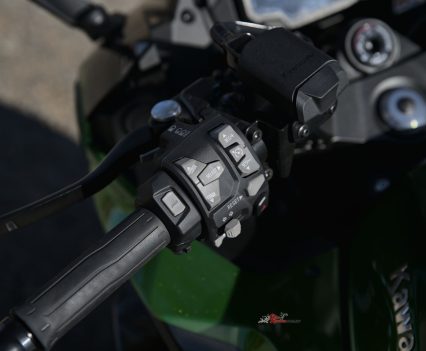 Technology takes another step forward. The TFT dash is crisp, colourful, and easy to navigate, offering everything from fuel data to lean angle and G-meter readouts. Two display modes – Road and Sport – let riders tailor the information they see, and Bluetooth connectivity via Kawasaki’s Rideology app now supports voice commands, letting you adjust settings or set GPS routes more easily. Cruise control remains simple and effective, while a new handlebar-mounted USB-C outlet adds charging convenience, even if it is bulky in appearance, it does the job.