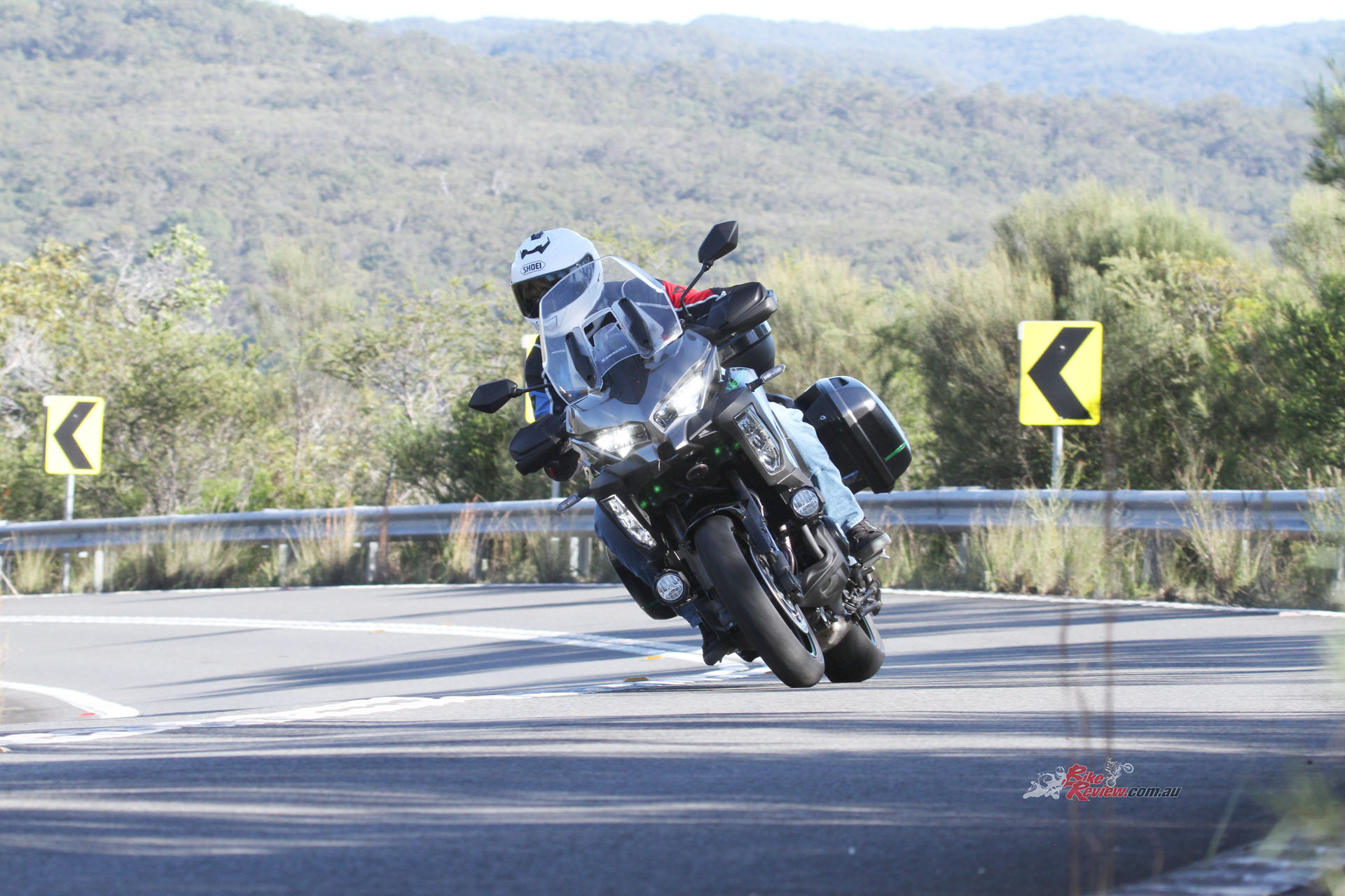 The Versys has so much clearance and composure that you can ride it like a big sports naked, and the electronics give you the confidence to push harder. Being chased by a big, upright tourer through the hills had my mates in fits of laughter, but they couldn’t drop me. I could hit all of the bumps, was not having to hang off or waste energy and was in comfort.