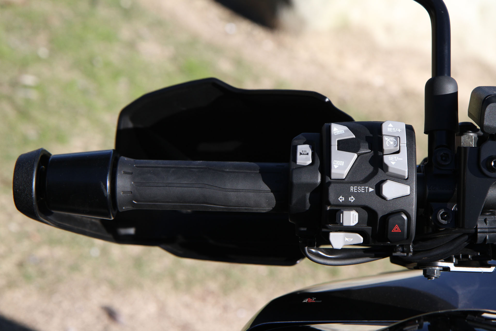 The Versys 1100 S has the large screen (adjustable), hand guards and heated grips. Ours had the LED spotlights too.