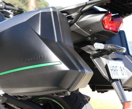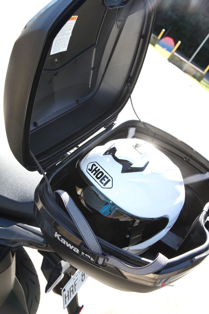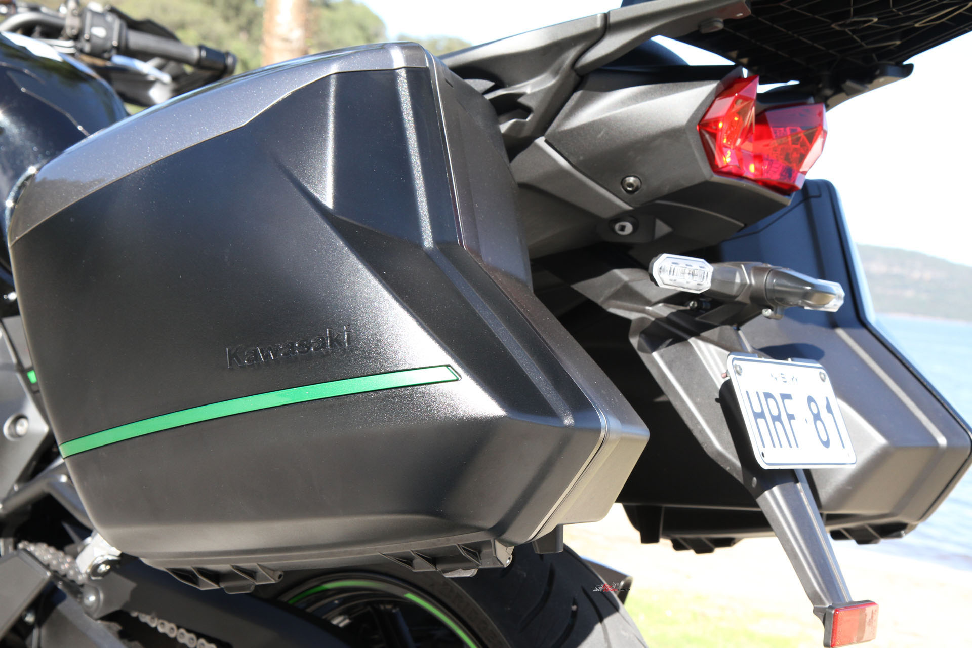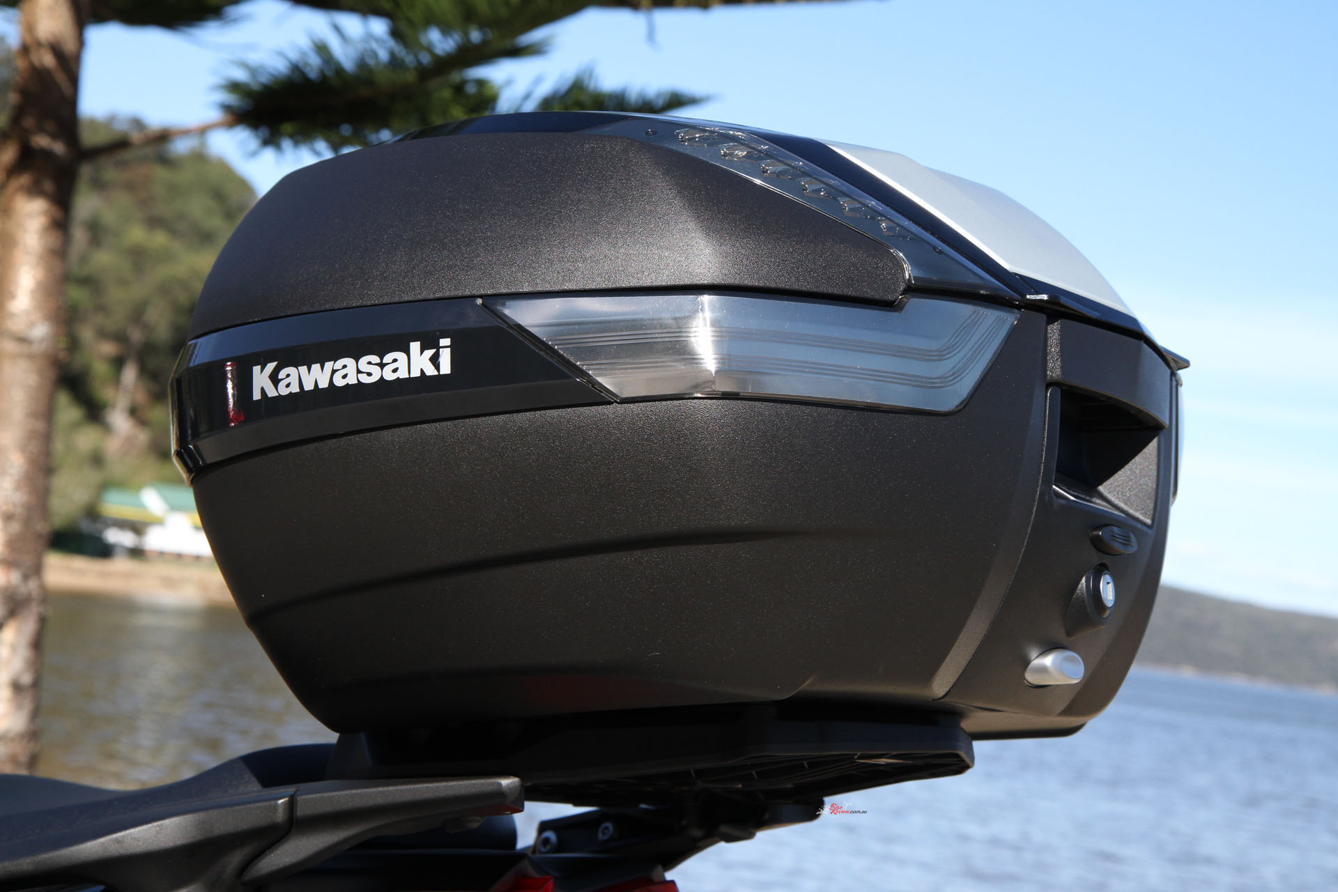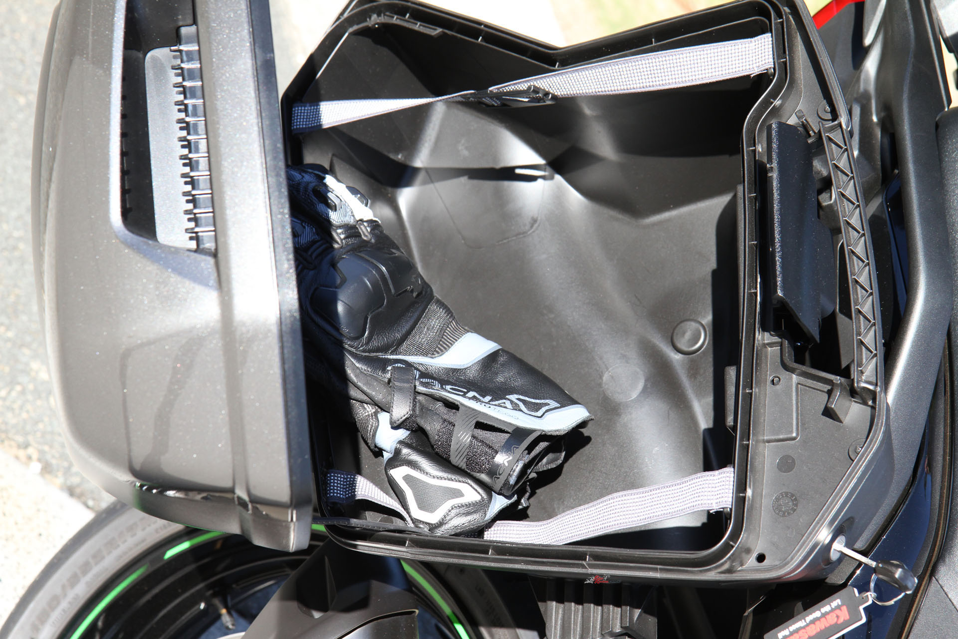Our press bike had the genuine accessory panniers and top box fitted. They are good quality kit and easy to remove.
