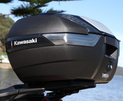 Our press bike was fitted with optional genuine Panniers ($294 RRP) and Top Box ($399.99 RRP), LED light Bar ($704.19 RRP), Wheel Rim Tape ($46.31 RRP), Tank Pad ($69.45 RRP) and heated grips ($369.56 RRP)… Check out the KMA Shop here…