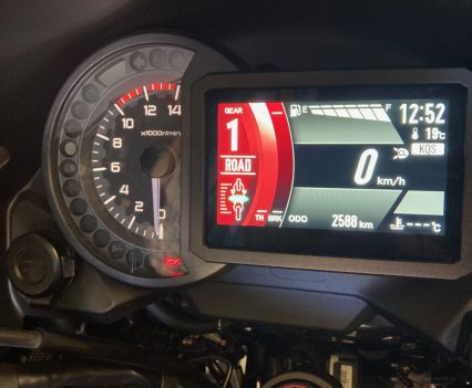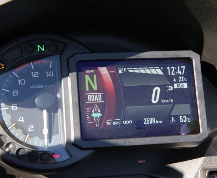 Touring comfort is equally impressive. The adjustable screen is brilliant, now step-less and easily tweaked from the seat, although not possible while moving unfortunately. The handguards are a godsend in winter. The seat is plush, the cruise control is flawless, and the whole bike settles into an effortless rhythm at 110km/h.
