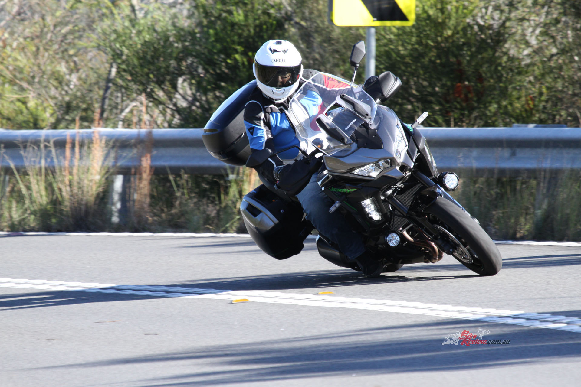 The Versys has so much clearance and composure that you can ride it like a big sports naked, and the electronics give you the confidence to push harder. Being chased by a big, upright tourer through the hills had my mates in fits of laughter, but they couldn’t drop me. I could hit all of the bumps, was not having to hang off or waste energy and was in comfort.