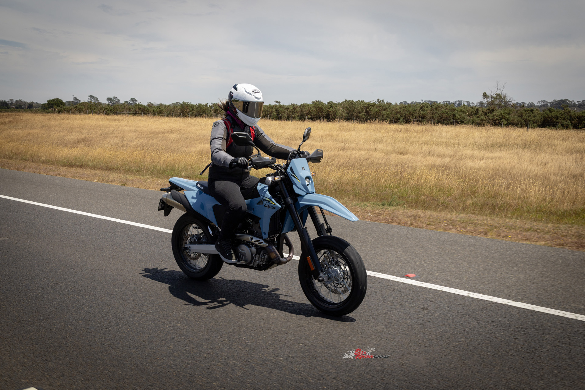 “The DR-Z4SM feels far less intimidating than the 890mm seat-height measurement should”