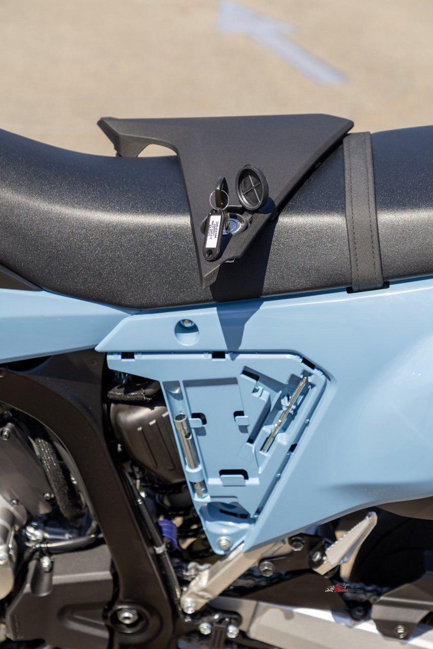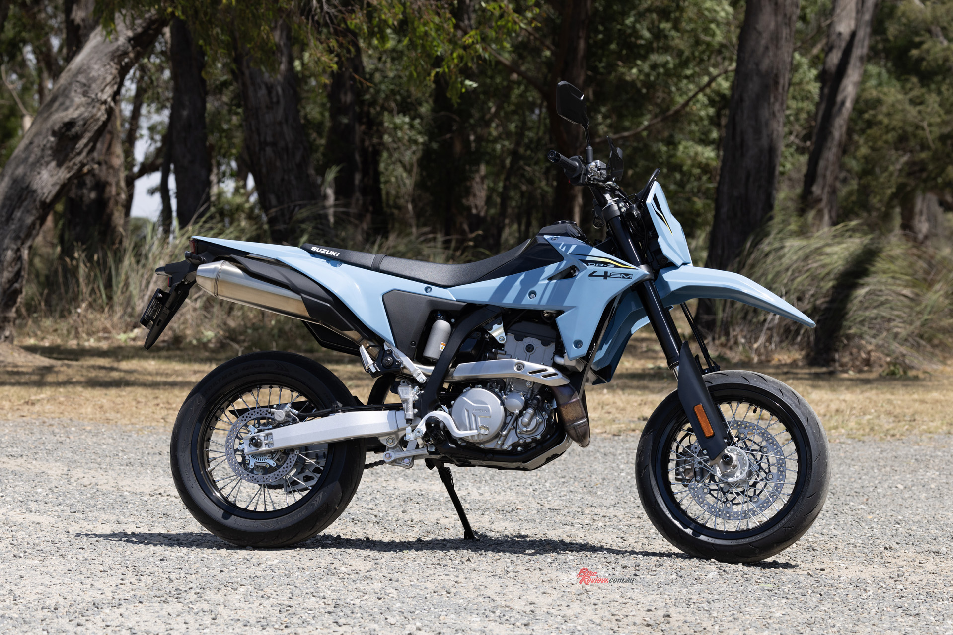 The DR-Z4SM comes in two colours: this Sky Gray option or white, which Suzuki calls Solid Special White No. 2.