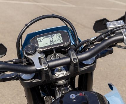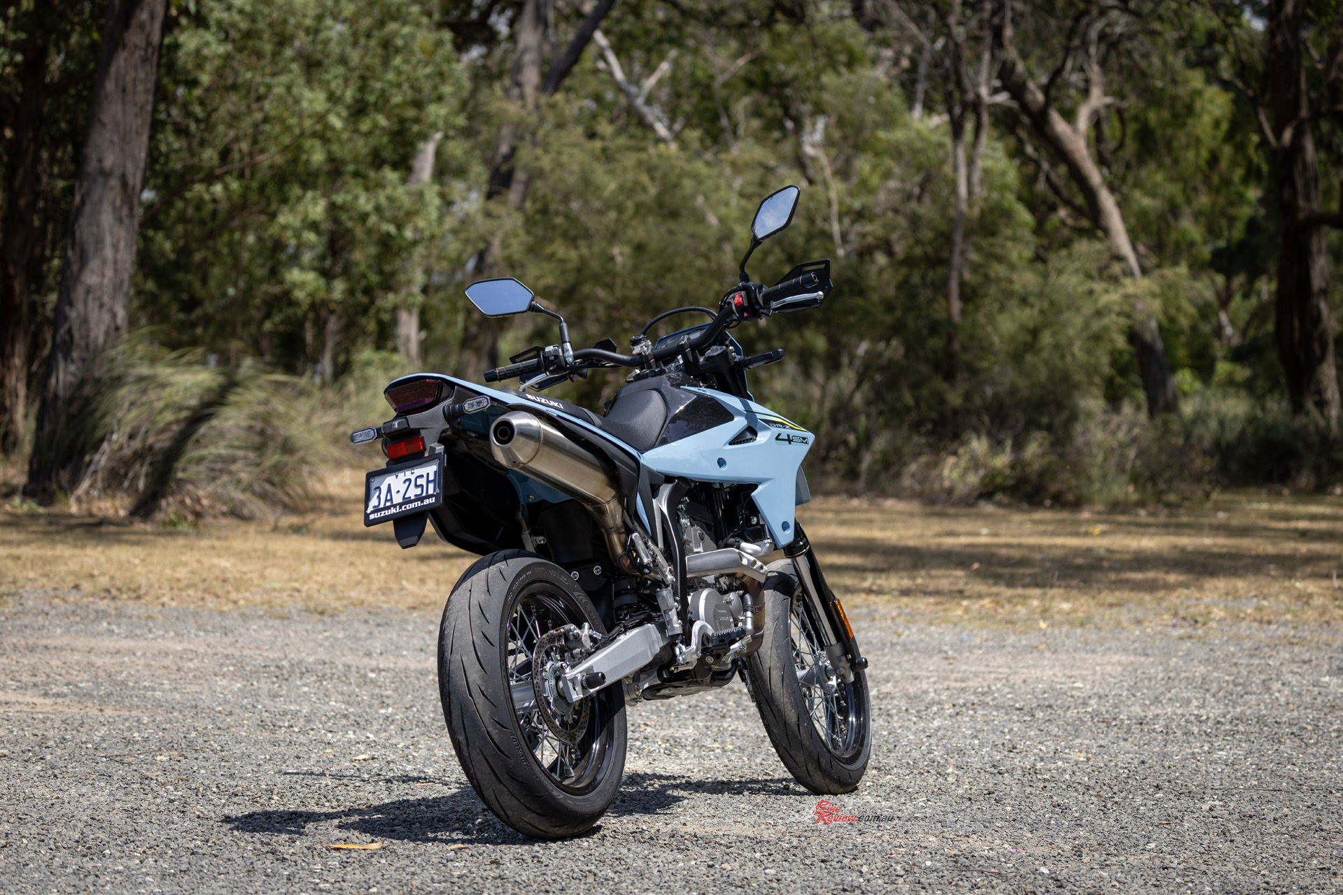 Day-to-day practicality needs to align with what you’re using the bike for. The tank is small at 8.7L, so it’s not the sort of bike you buy for long-haul touring range, but that’s consistent with the DR-Z4SM’s purpose, which is short, sharp bursts, where you’re mixing traffic, back streets and twisty roads, rather than clocking endless highway kays.