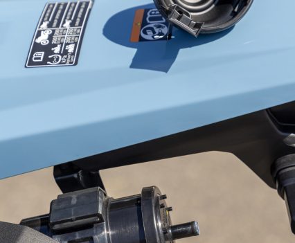 To get the DR-Z platform over the Euro5+ line, Suzuki has made some significant engine updates. Fuel injection is the standout, but it’s backed by revised cam profiles and lift, updated pistons designed to improve combustion efficiency, and dual spark plugs to help it burn cleaner and more consistently. There are also new titanium intake valves and sodium-filled exhaust valves, plus a redesigned stainless exhaust system incorporating a dual-stage catalytic converter and oxygen sensor. The bike is even fitted with an odd-looking charcoal canister at the rear for evaporative emissions control in markets like Australia, Canada, Europe and California.