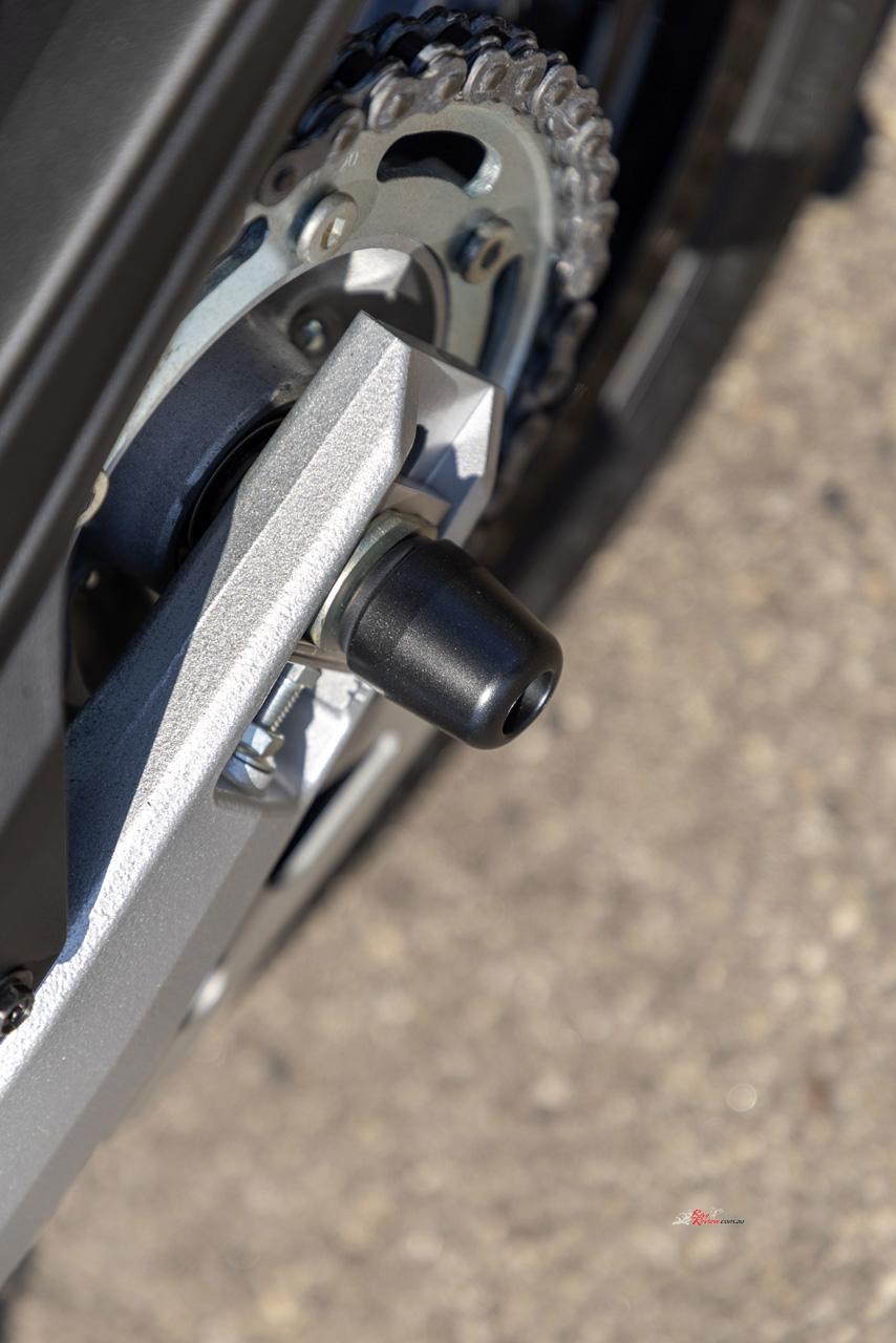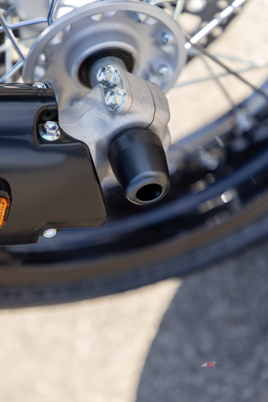 Of course there’s Ducati’s $24,100 Hypermotard 698 Mono, but they’re chalk and cheese. My test bike also had a few optional extras fitted that won’t come on a standard DR-Z4SM, including a 12-volt power outlet ($100.73), plastic handguards ($107.46), and front ($73.86) and rear ($73.86) axle sliders, which lifts the as-tested price to over $15,300.