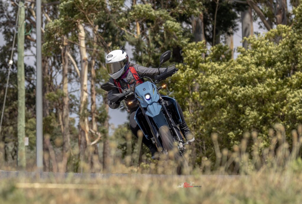 From the first few kilometres it’s clear the DR-Z4SM hasn’t lost the thing that has given the platform such longevity. The 398cc single delivers its performance in a really usable way, with strong response as soon as you crack the throttle and a decent spread of drive that suits everything from traffic to back roads. It’s a motor you can ride lazily if you want to, or work a bit harder when the road opens up, but either way feels eager and light on its feet.
