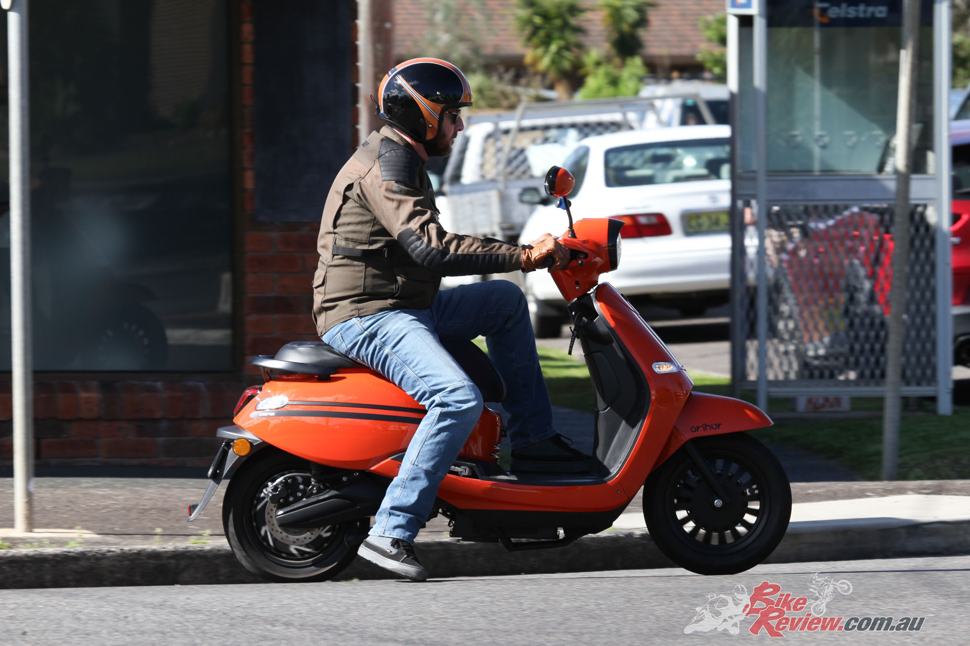 Typical of e-scooters, there is a rearward weight bias, a bit more pronounced than petrol scoots, but you adapt quickly.