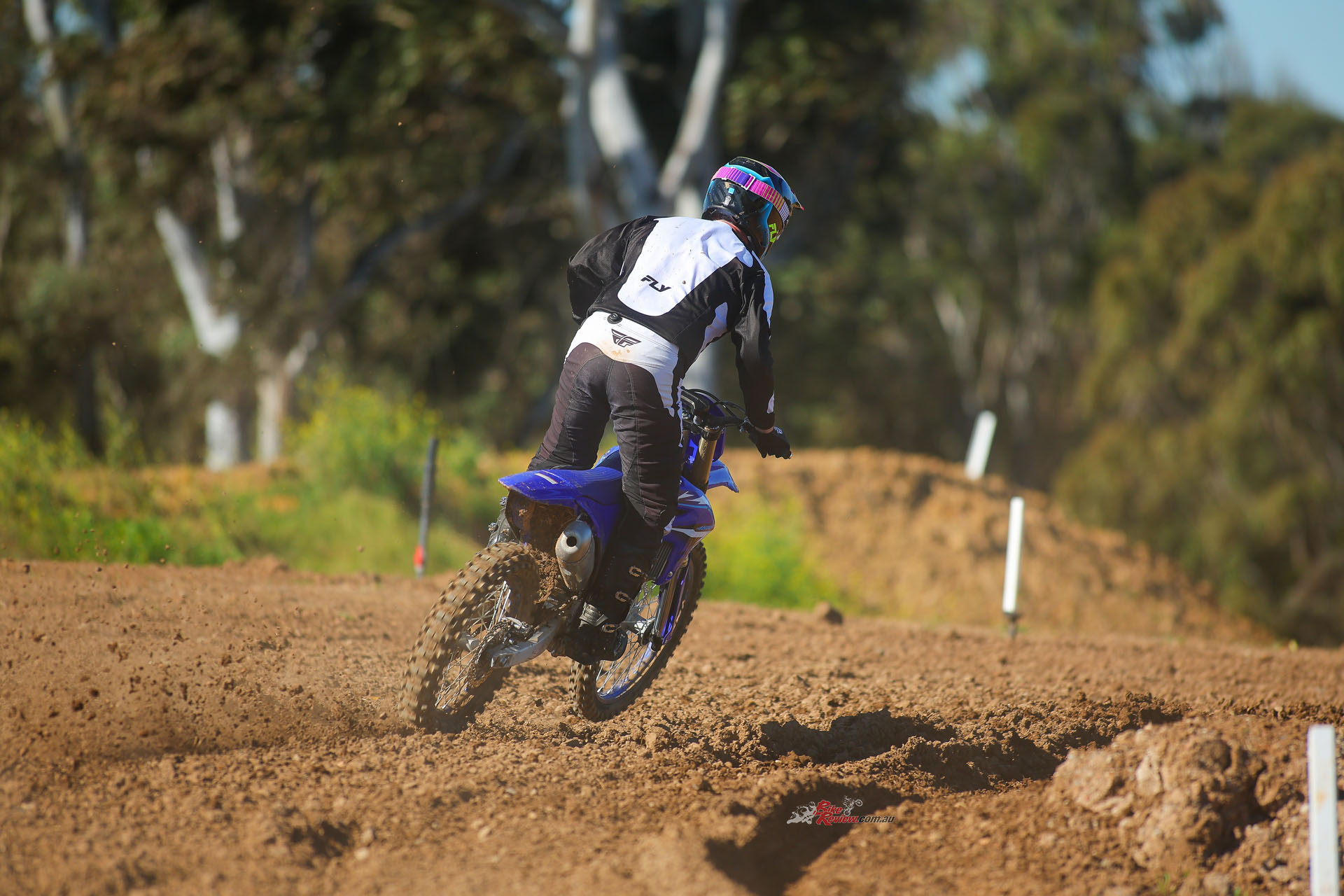 As soon as you hit the ignition switch the YZ450F roars. Although a little quieter than previous years due to the new exhaust resonator and low noise muffler (to future proof the YZ450F for 2027 regulation changes), it barks nicely enough, but the exhaust note was a little quieter on idle. However, once I opened it up out on the track, that 450 roar came out in the mid to high rev range.