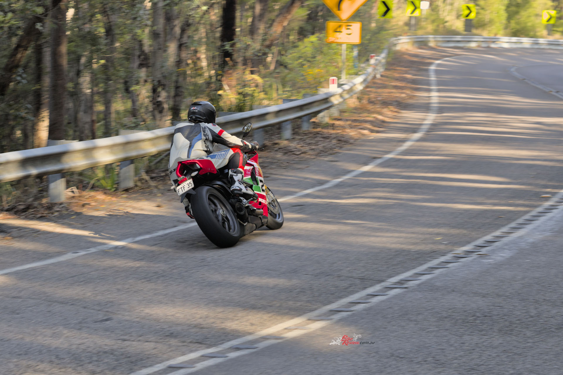 Drive off a corner is urgent without being brutal, and the quick-shifter makes slicing through gears seamless both up and down. It’s the kind of motor that encourages you to push a little harder each run. It really gets going up top, but does flatten a little. For a near on 1000cc engine, it won’t pull your arms from the sockets like an inline four 1000cc sportsbike, but it is fast enough, fun, controllable and not taxing to ride up in the rev range.