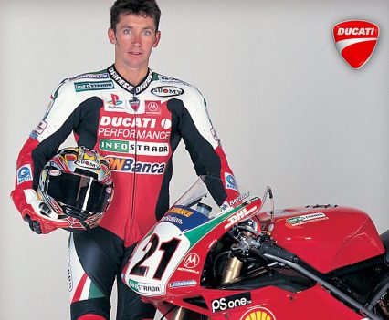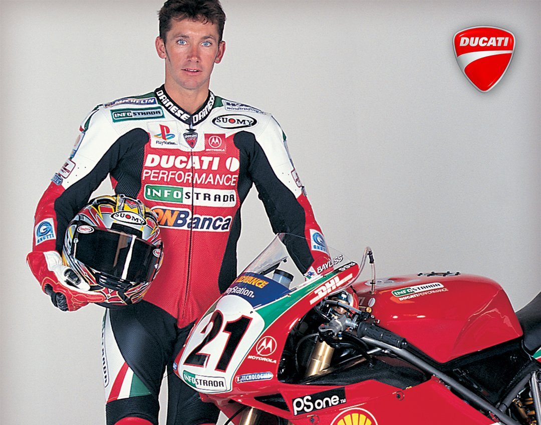 His big break came in the late ’90s when Ducati called him up as a replacement rider in the World Superbike Championship (but before that, who could forget the appearance on Numata’s RGV250 at Phillip Island in 1997). By 2001, he’d claimed his first WorldSBK title on the Ducati 996 R, beating Colin Edwards in a season-long battle.