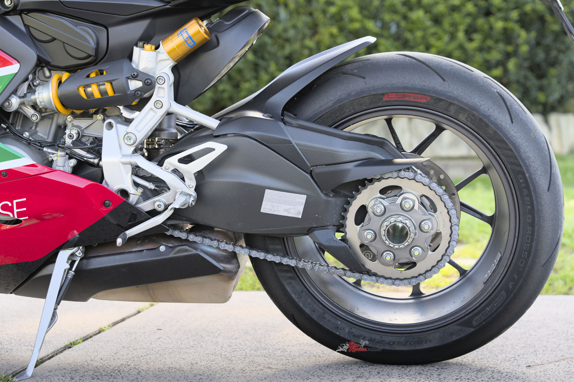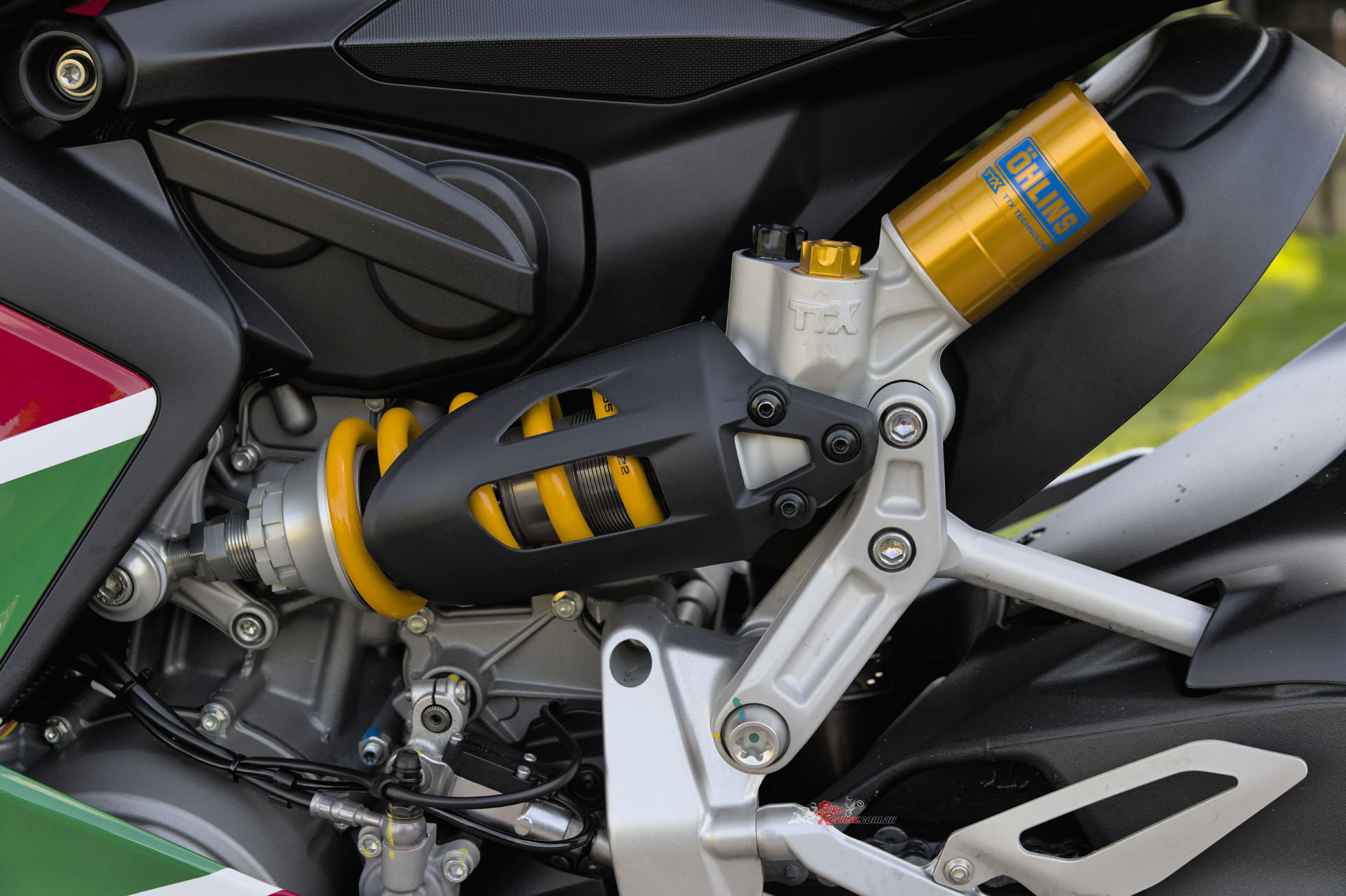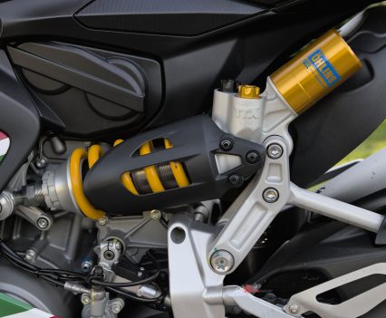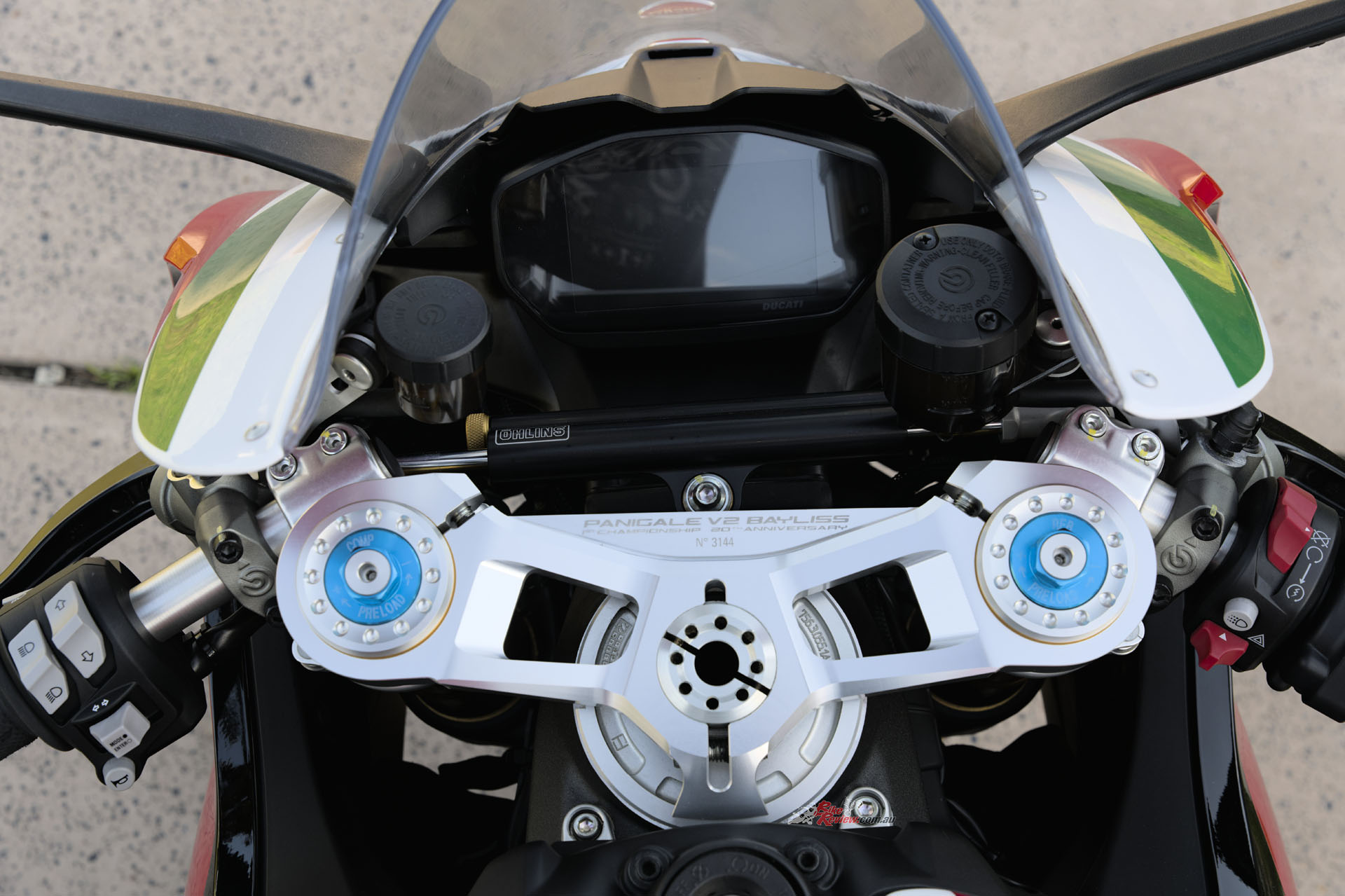 Yes, where the Bayliss earns its extra price tag is in the suspension department. Ducati has swapped the standard SHOWA/Sachs combo for a fully adjustable Öhlins NIX30 fork and Öhlins TTX36 shock, matched to an adjustable steering damper. It’s such a great set-up and worth the added price alone, you would be pushed to do the upgrade to a standard V2 for that price. It isn’t kit that just looks good, but oh yeah it does look good, but it makes the ride that much better…
