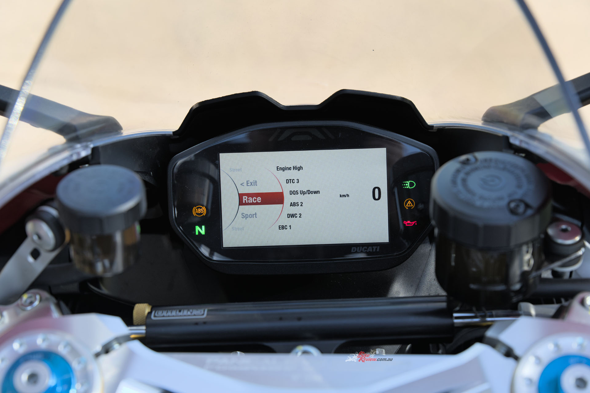 Instruments & Electronics: Full-colour TFT display, LED headlamp, LED indicators, LED tail and brake lights, three riding modes (Race, Sport, Wet), Ducati Traction Control EVO 2, Ducati Wheelie Control EVO, Engine Brake Control EVO, Cornering ABS EVO, Ducati Quick Shift up/down EVO 2, ride-by-wire throttle, lap timer.