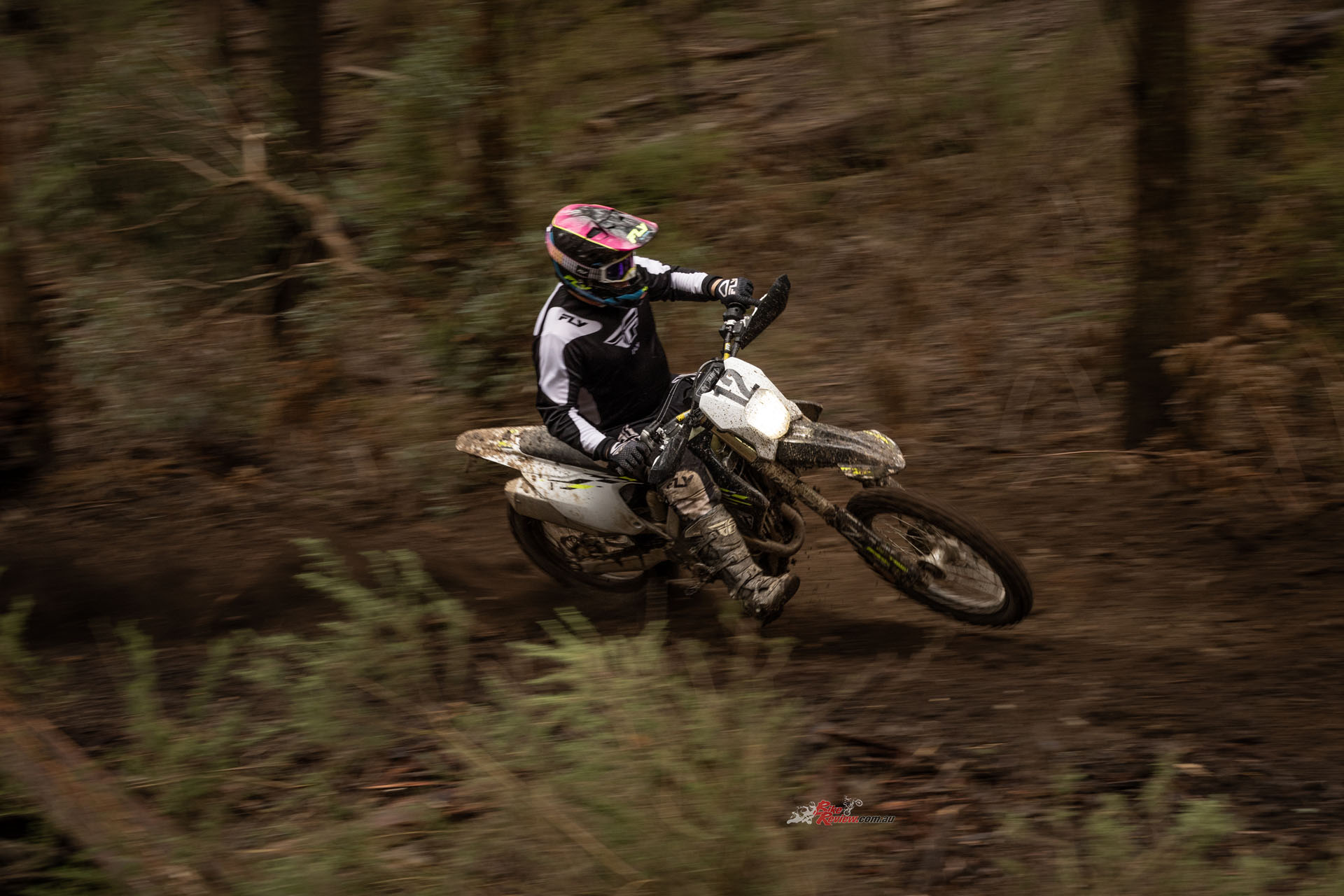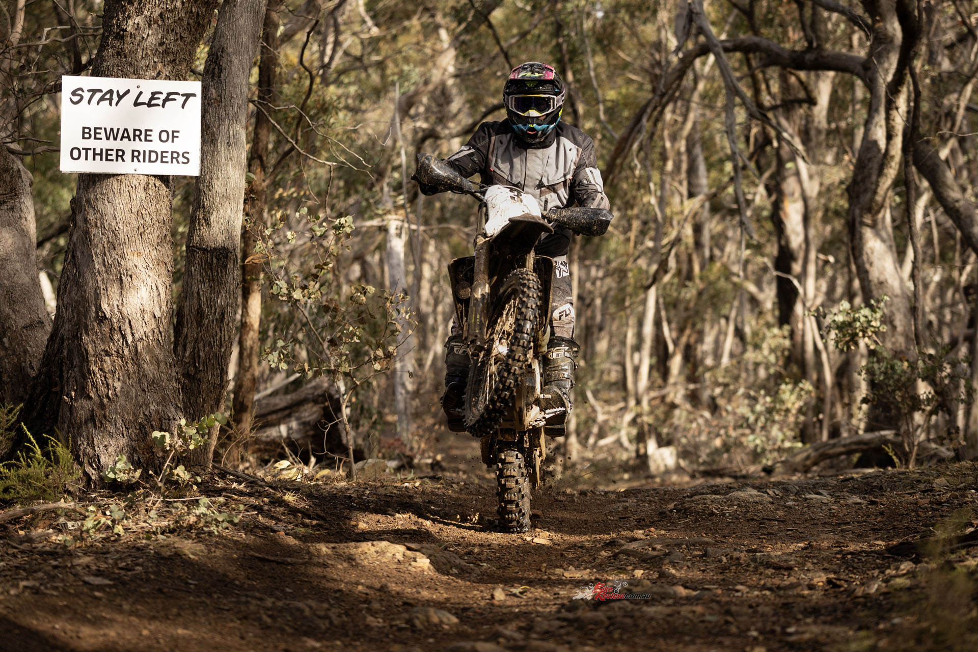 Heading out for testing, the first bike Dan rode was the grunty TF 450-E with it’s stump pulling torque and power…