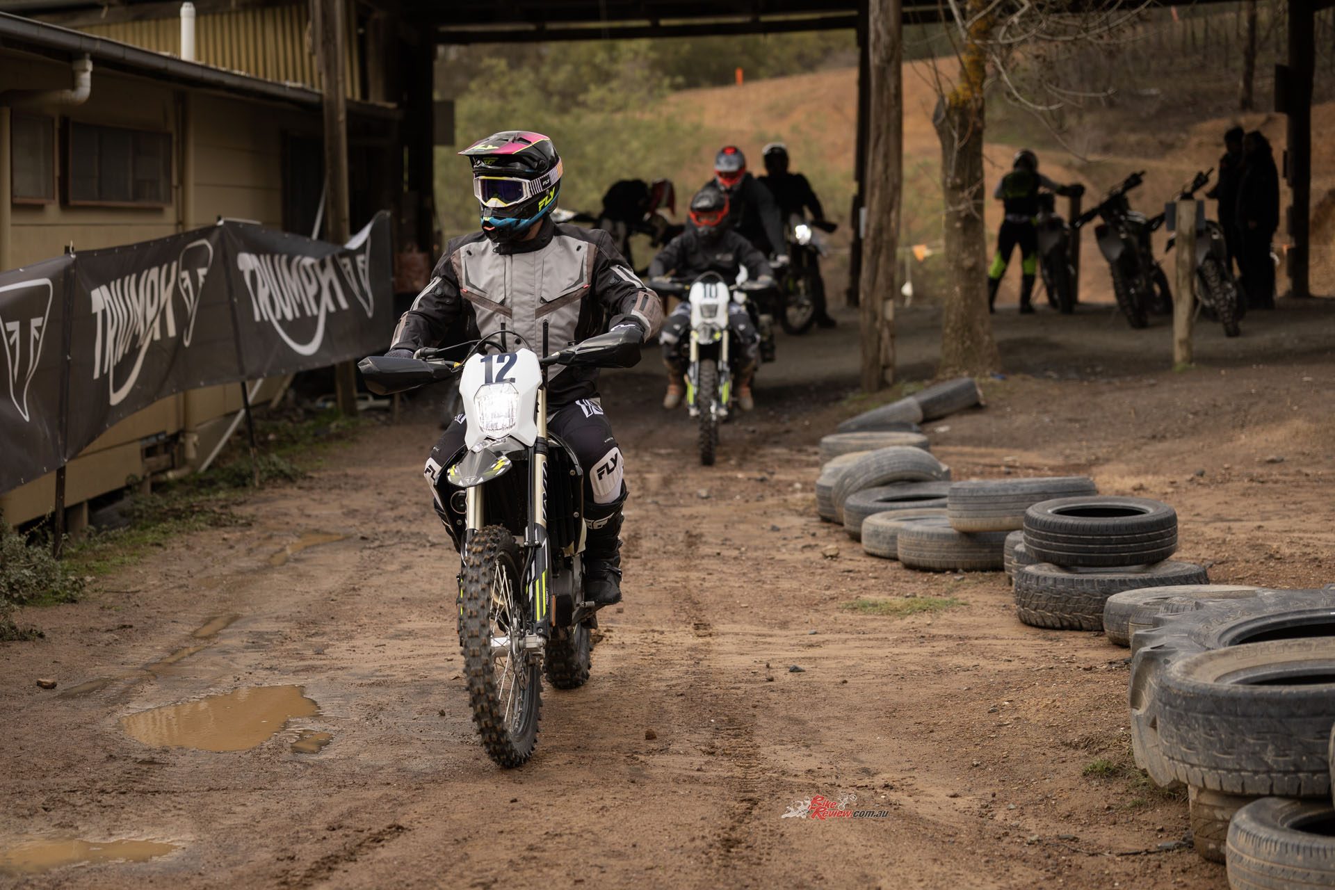 But that didn’t stop us. After breakfast we geared up and walked up to the undercover shed and were greeted with a lineup of Triumph’s 250cc and 450cc enduro models ready for us to ride.