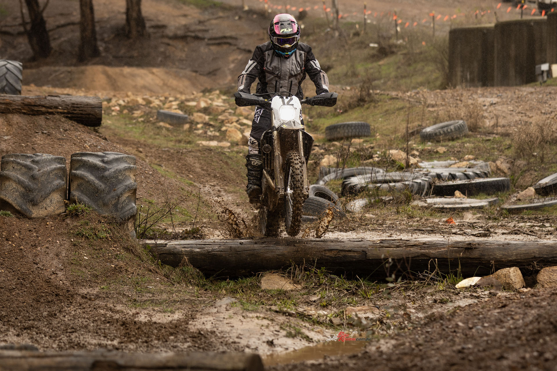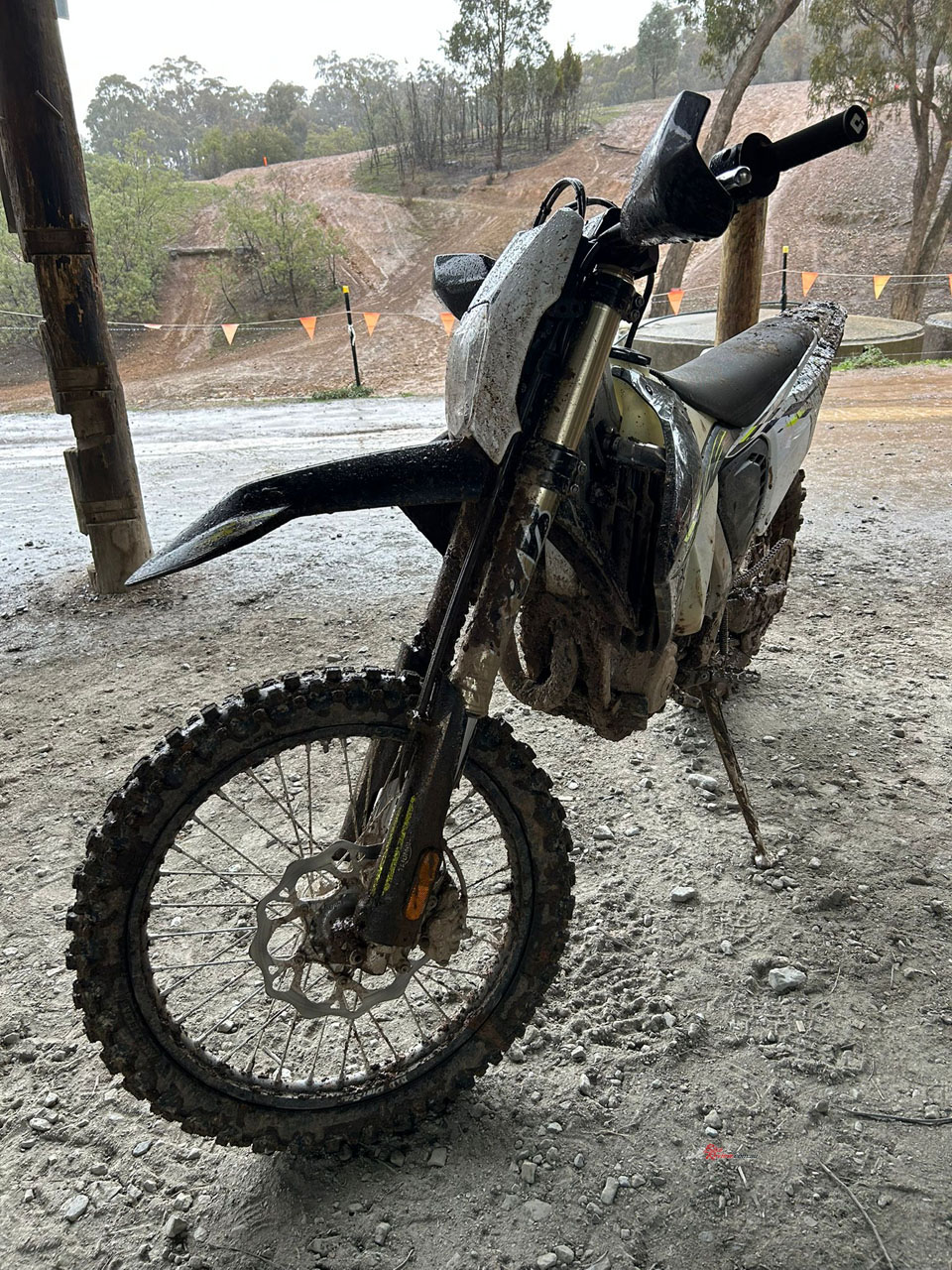After a ride on the 450 it was time to get on the TF 250-E. Straight away I was impressed yet again. The note of the exhaust still provided a crisp bark even with the extra resonator to decrease sound. Paired with a smooth crisp throttle, the reduced capacity engine that powers the TF250-E is super smooth, controllable and just a really nice and friendly engine to experience in these slick conditions.