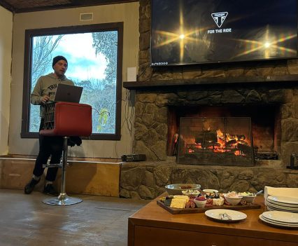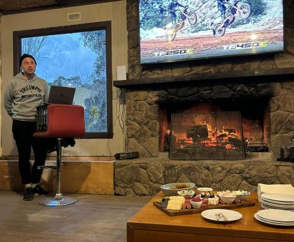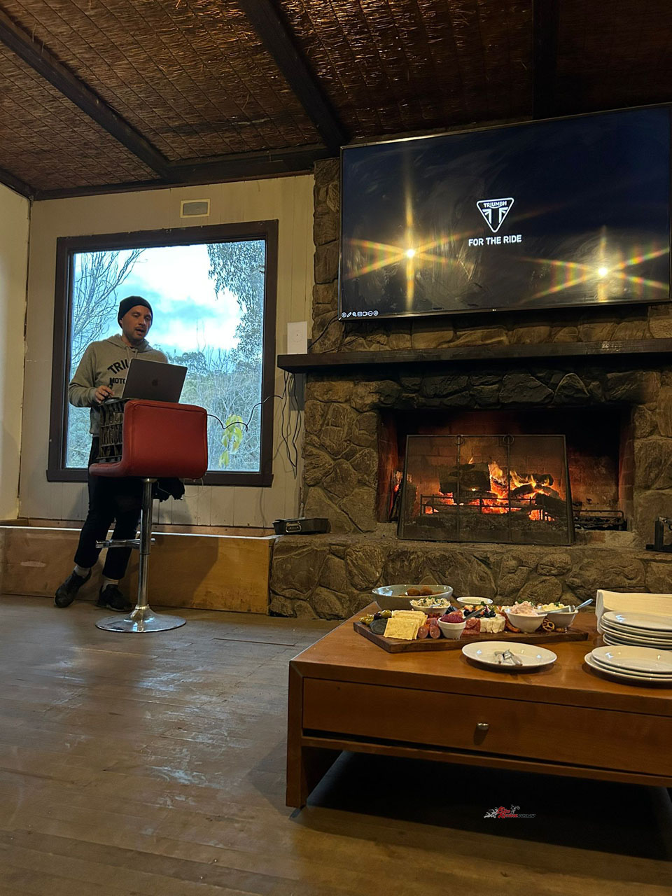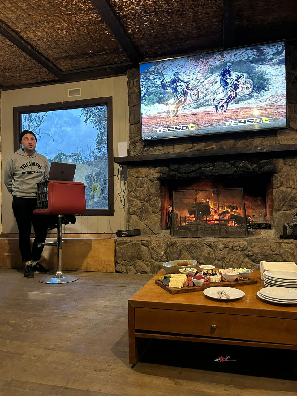 After a short drive to the northeastern suburbs of Victoria, I arrived at Star Glen Lodge. Upon arriving I got to hang out with this Triumph Australia team before the presentation, giving me the chance to pick some of their brains about their new TF 250-E and TF 450-E, as well as have a good look at the brand new TF250-E they had on display next to the fireplace.