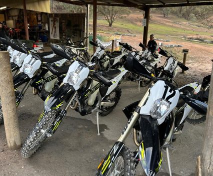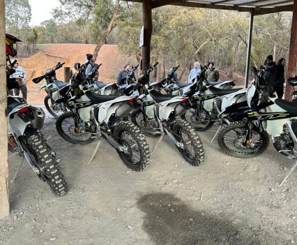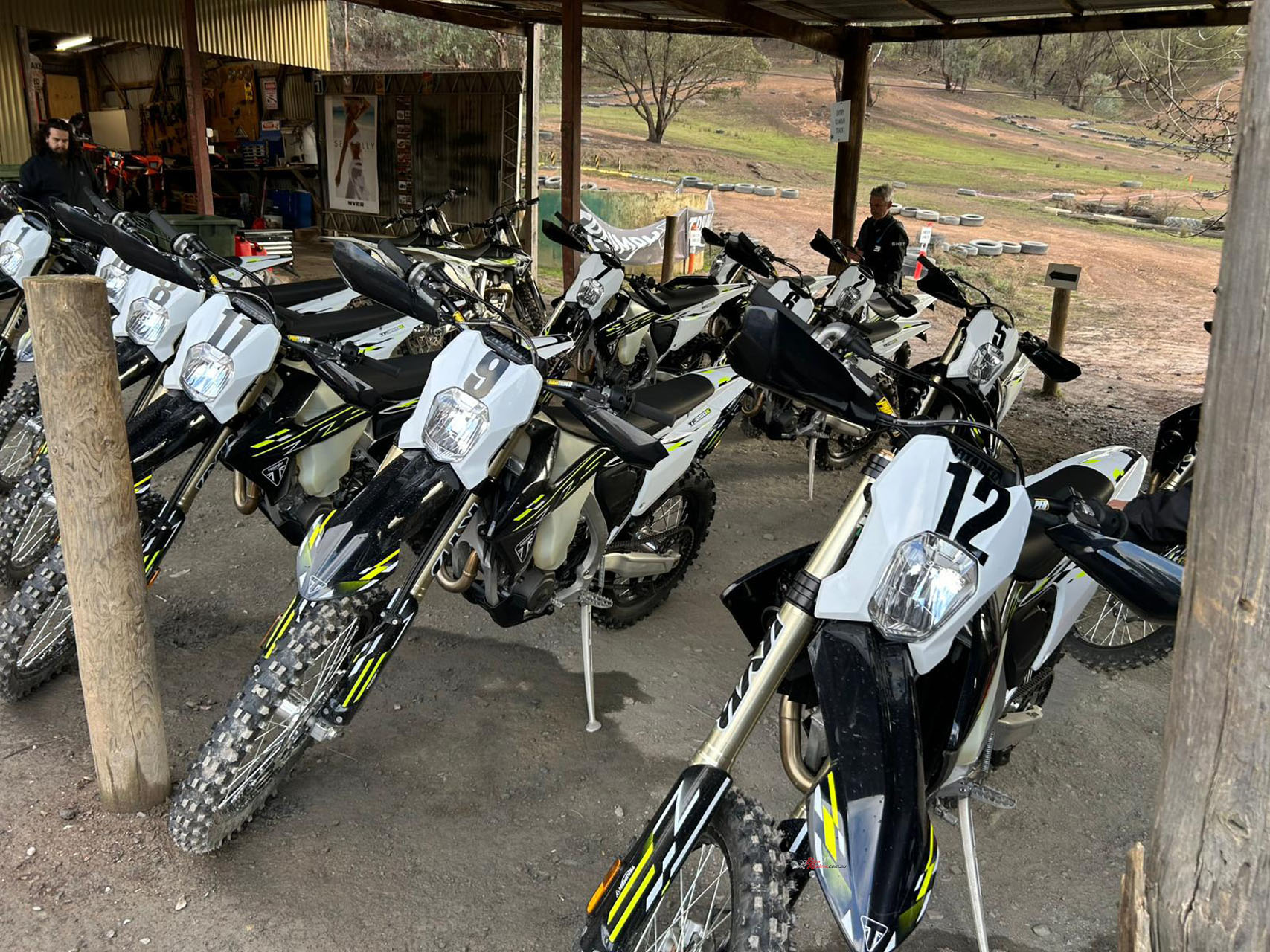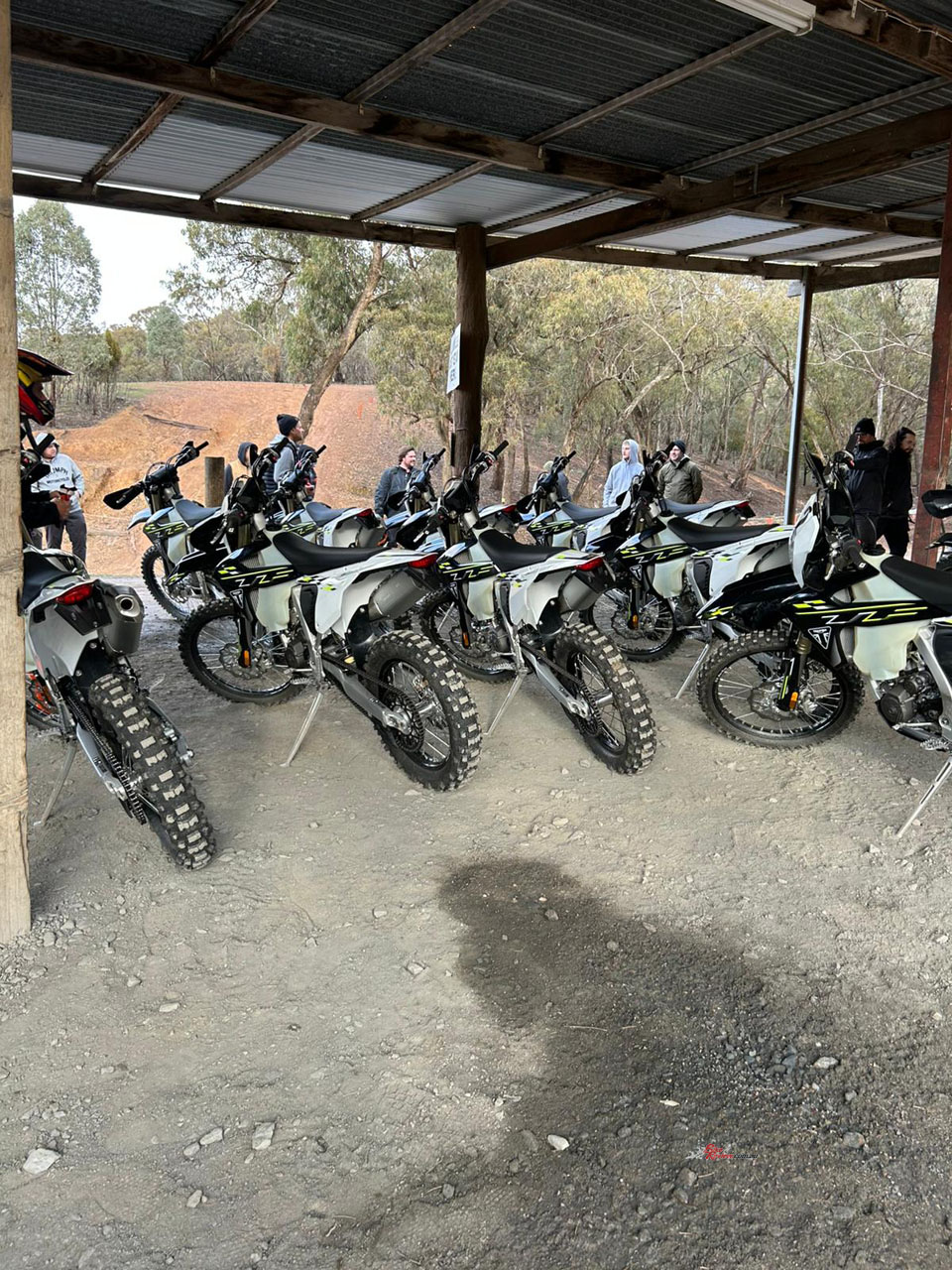 But that didn’t stop us. After breakfast we geared up and walked up to the undercover shed and were greeted with a lineup of Triumph’s 250cc and 450cc enduro models ready for us to ride.
