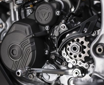 Both models feature Triumph’s lightweight aluminium spine frame with twin cradle design. To optimise balance, performance, mass and agility. This provides high speed stability while delivering sharp directional control. With post fabrication machining for dimensional accuracy, also featuring in house hand TIG welded craftsmanship.
