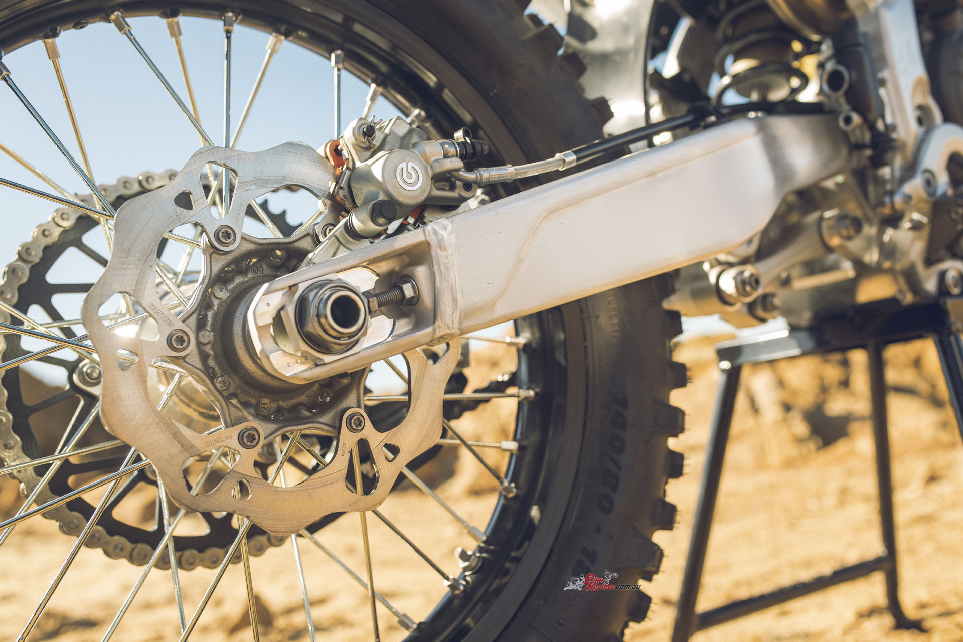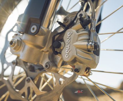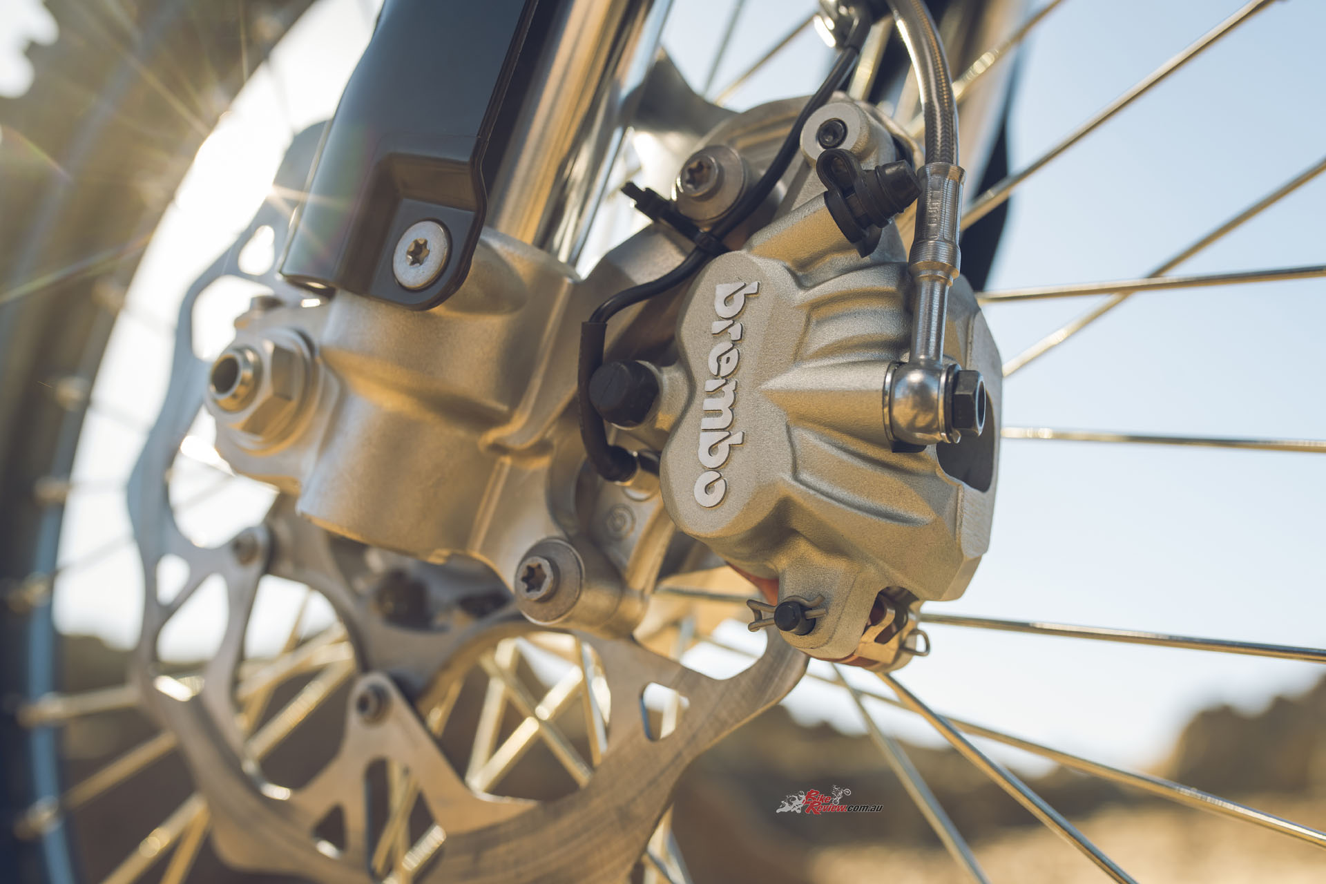 The KYB 3-way piggyback shock has a 50mm piston and is fully adjustable, while the swingarm is alloy. This ensures accurate front-end feedback and delivers a confidence inspiring ride. All suspension comes equipped with enduro spring rates and tunes to ensure you are getting the best suspension to support you on your next adventure. The brakes comprise of Brembo calipers, master-cylinders and levers, with a front twin 24mm piston floating caliper paired with a Galfer 260mm disc, while the rear is a single 26mm piston floating caliper paired with a Galfer 220mm disc.