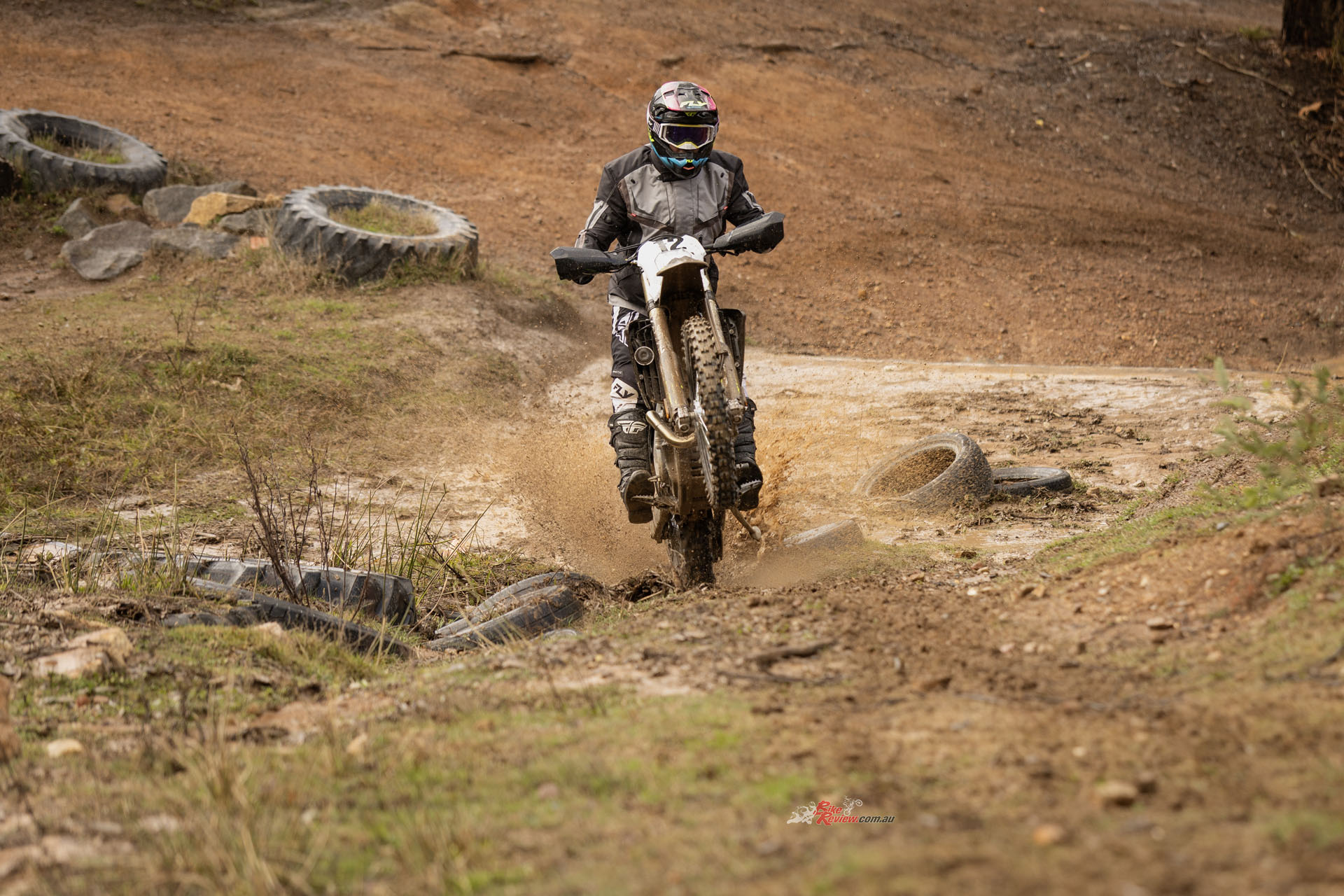 Heading out for testing, the first bike Dan rode was the grunty TF 450-E with it’s stump pulling torque and power…