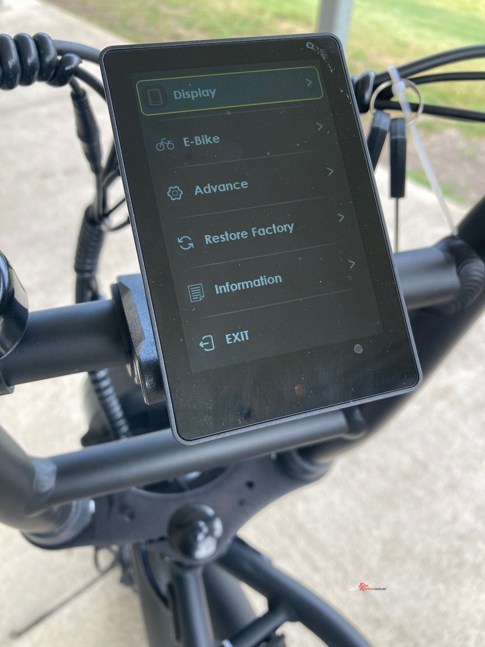 Assist: 250w std / 500w unlocked (NSW / Private Property) / 750w (Off-road use), BAFANG rear hub motor, 85Nm torque, 48v 20Ah Samsung (960Wh) battery, 48v 20Amp DMHC Sine-wave controller, OLED multifunction display, RideWave TorqueFlow PAS Sensor, On-Demand, Removable twist throttle. Note – tested in 500W NSW mode, with notes included on 750W off-road/private performance.