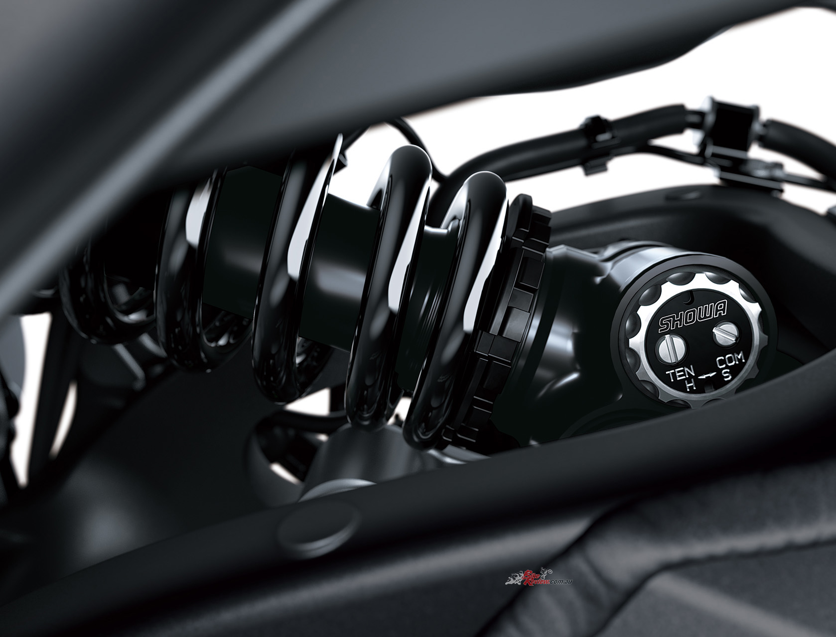 The swingarm pivot has been raised by 2mm, fork height reduced, and linkage and spring rates adjusted to sharpen steering and improve rear-end traction.