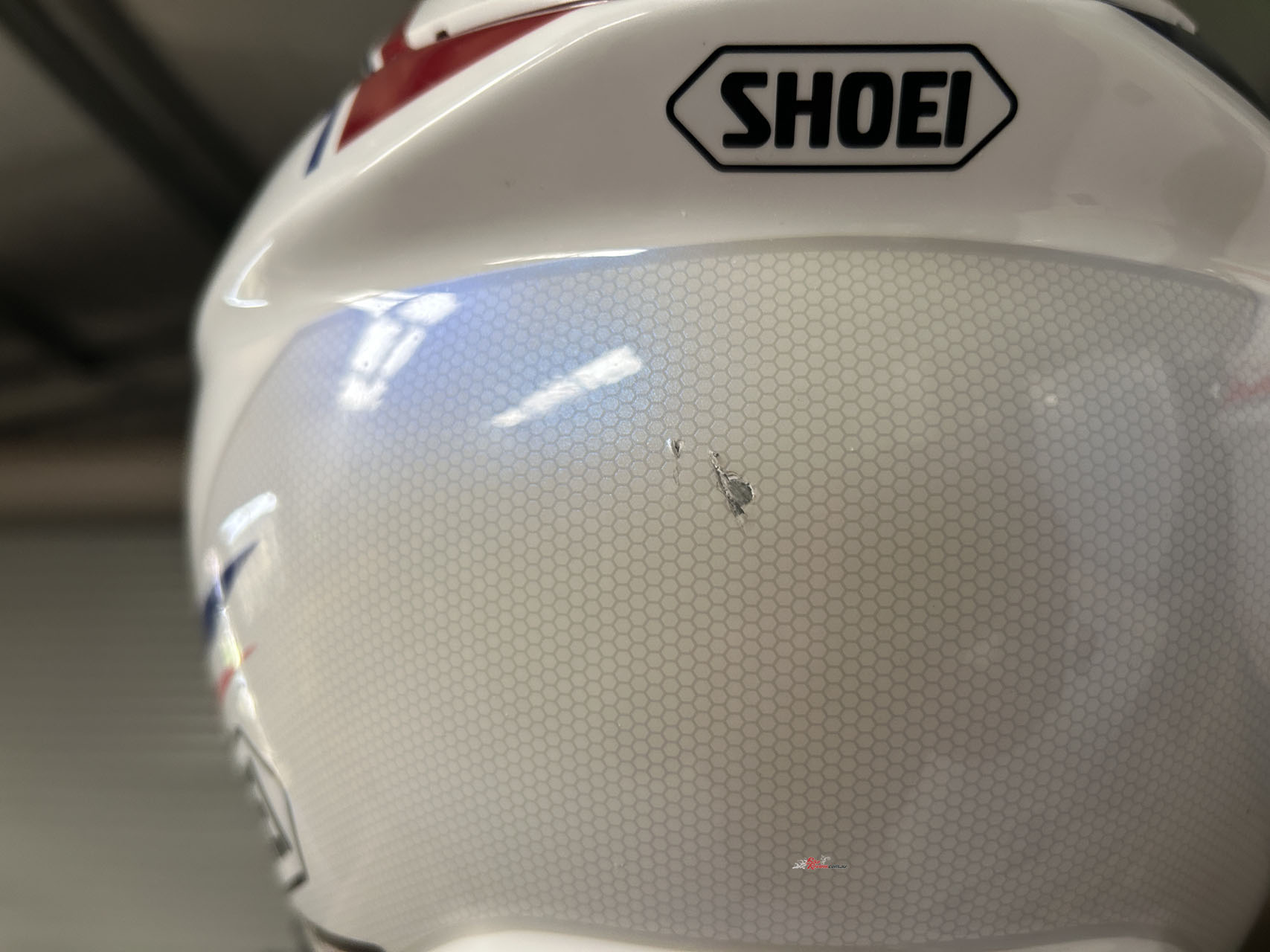 “Shoei helmets and a lot of other brands… they paint the inside of the white EPS with a black paint,” Damien explains. “You’ll actually see craze marks and indentations through the EPS… and you’ll be able to see the damage there and know when to replace the helmet.”