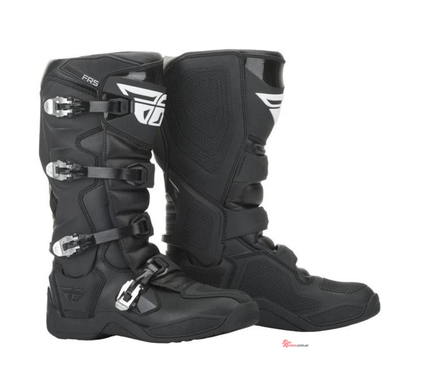 The Fly Racing FR5 Motocross Boots are available for $399RRP in Black, Red/Black/White and Grey/Blue/White in sizes US7-US13. Visit amxsuperstores.com.au for more.