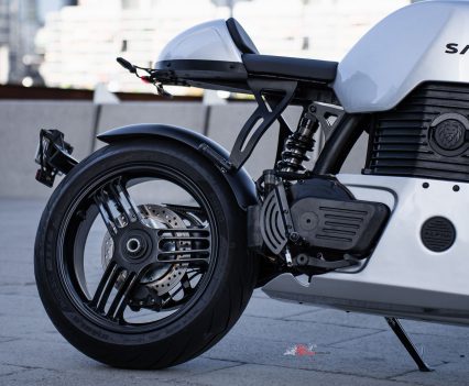 One of its most distinctive features is the single-sided swingarm, developed entirely in-house. It went through three iterations before the team achieved the right tolerances and strength balance. “Having a single-sided swingarm was important for us,” Savic says. “But it’s hard to do, you know… But we got there. It was through sheer persistence we got there.” The result is not only a design signature but a technical milestone for a start-up building its own hardware from the ground up.