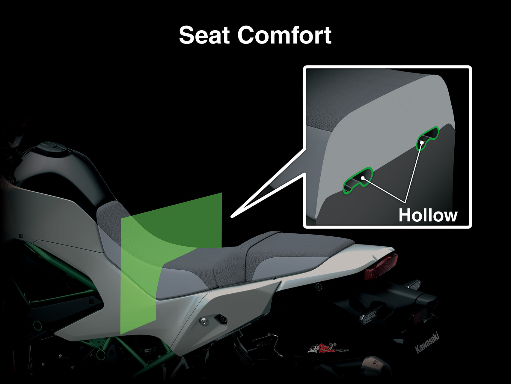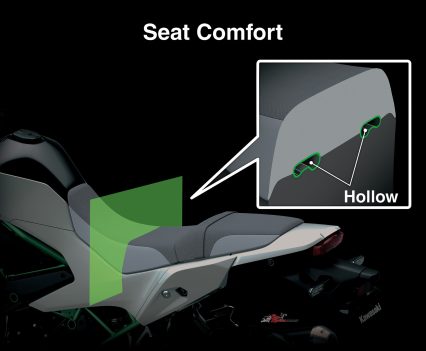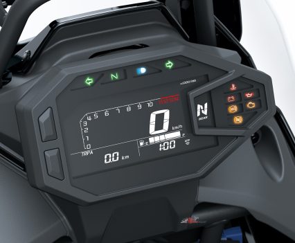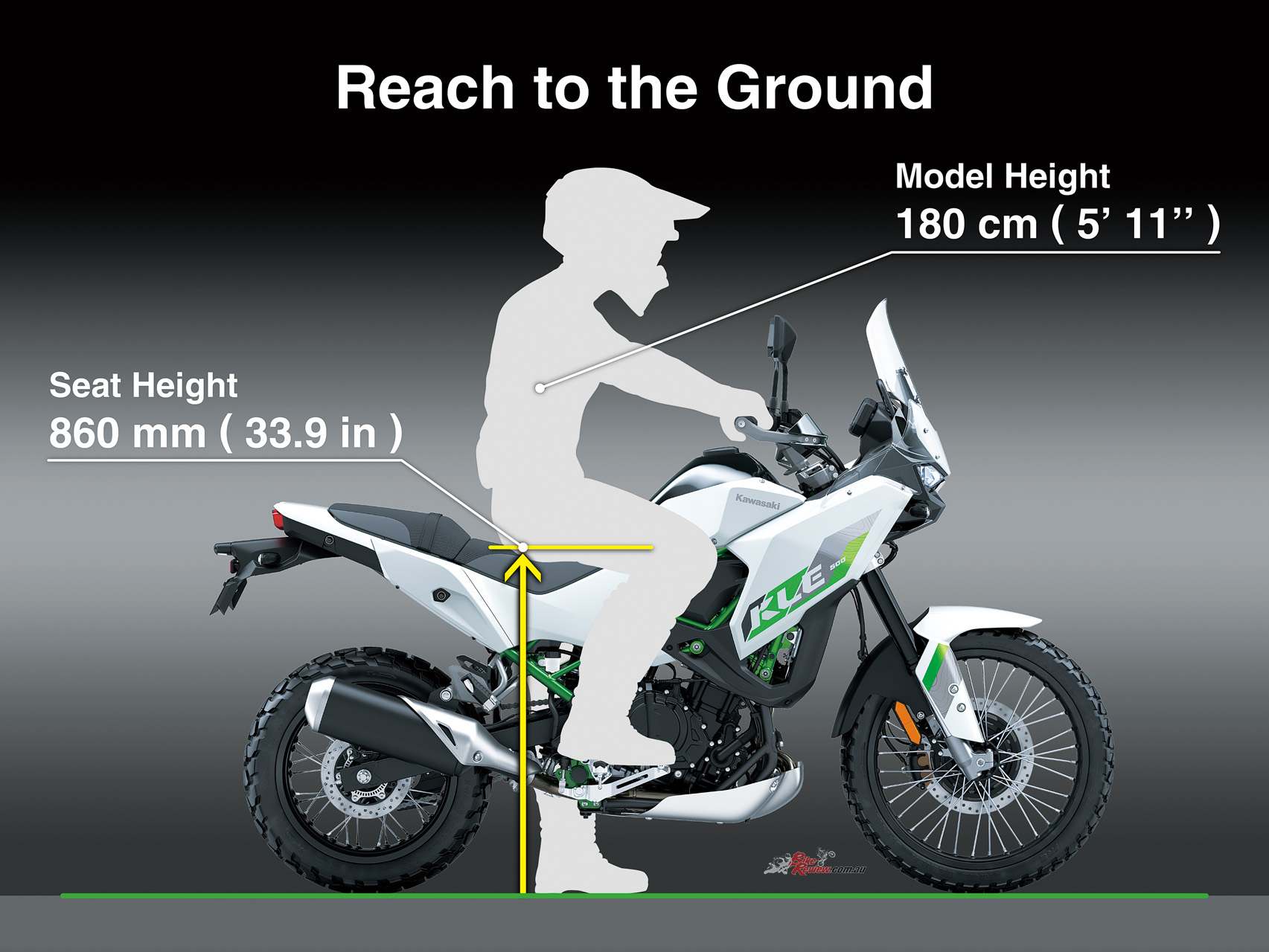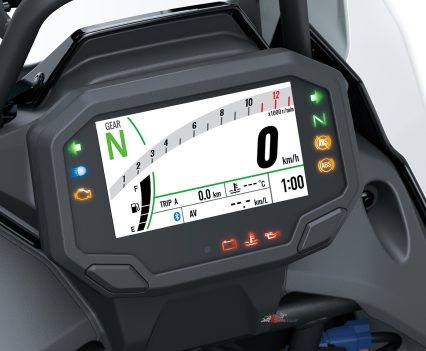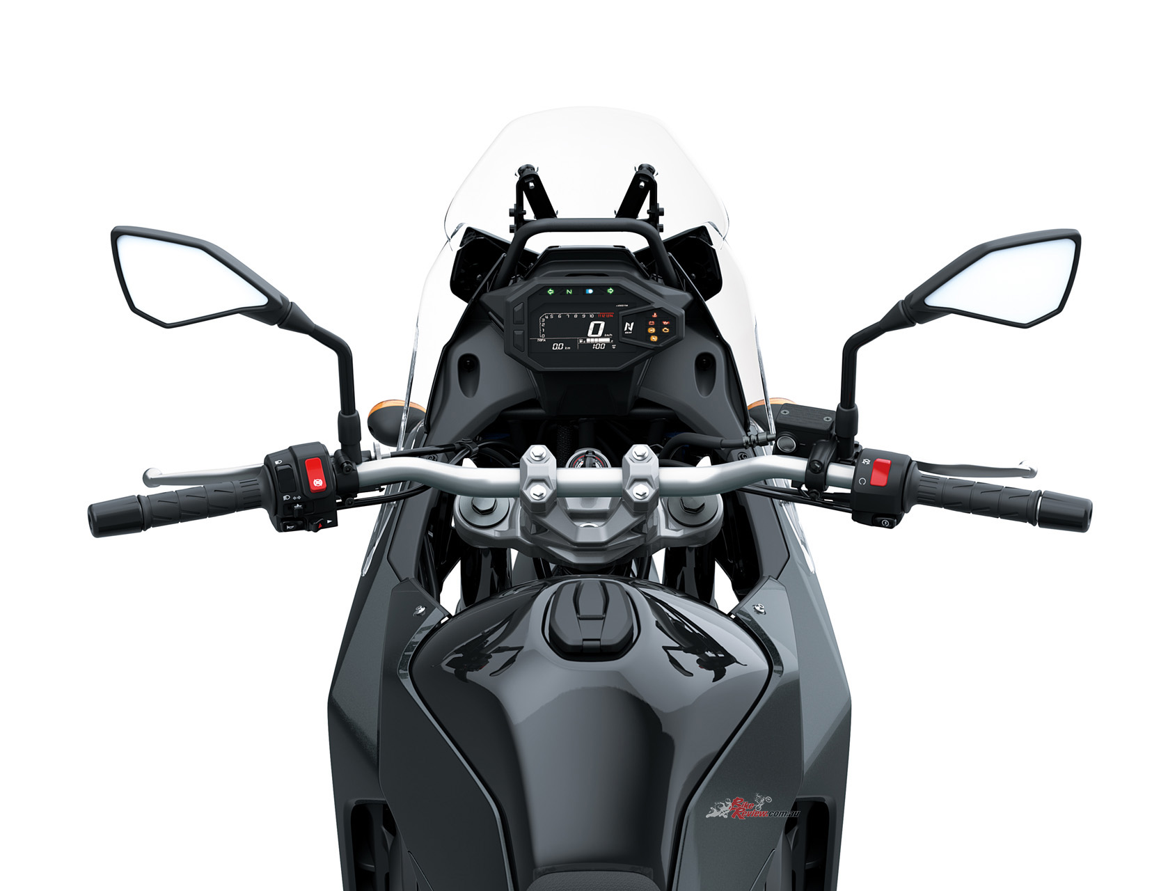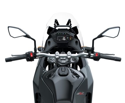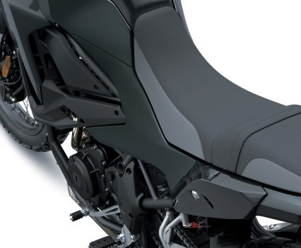 Kawasaki has clearly drawn inspiration from its KX competition range, with rally-inspired bodywork, a slim mid-section, and an upright stance that gives riders an immediate sense of control. The three-position adjustable windscreen and ergonomic seat geometry provide long-distance comfort, while four ERGO-FIT seat options allow riders of all heights to find their ideal setup.