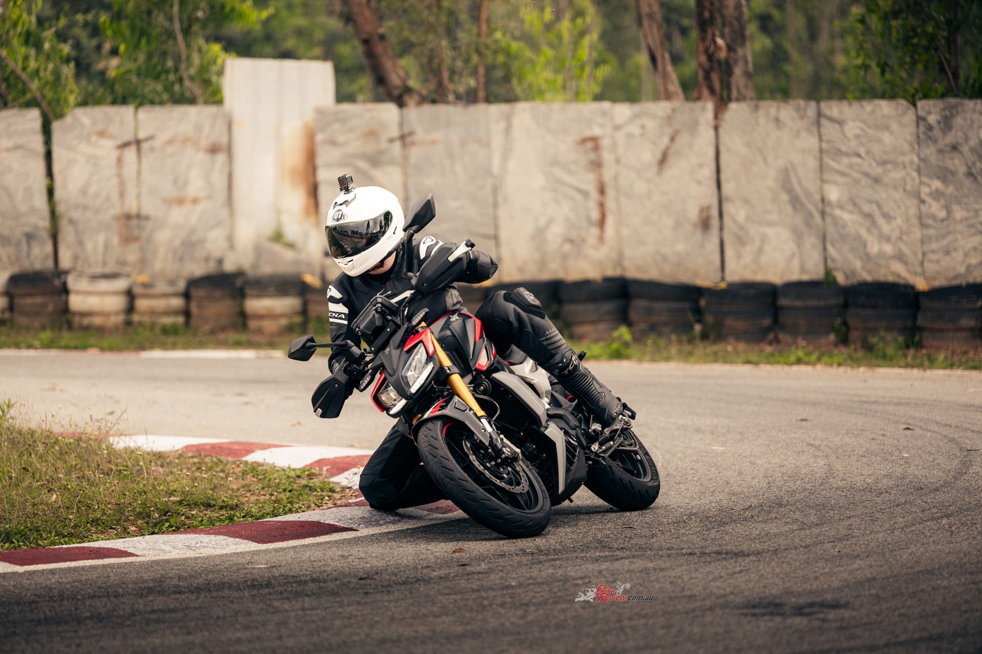 On the Apache RTR 310, an awesome little bike that has a 6-axis IMU, so a full electronics suite including two-way quick-shifter, plus KYB suspension, Michelin tyres and ByRe brakes with Bosch ABS. Weapon! Review on the way.
