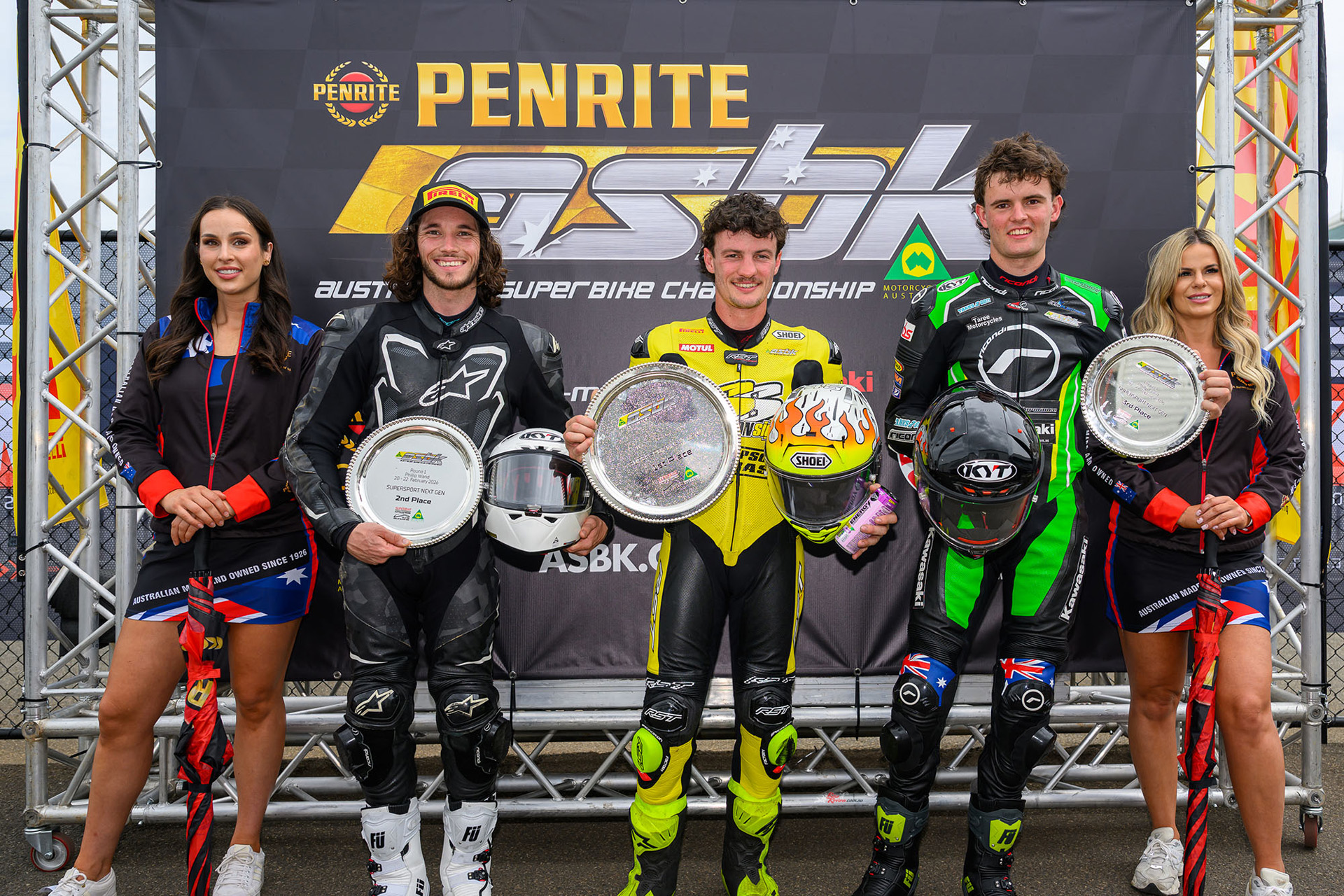 Roulstone (Motocity Honda) produced one of the rides of the weekend in race two, launching from third position on the final lap to snatch his maiden ASBK Superbike victory in just his second start. In contrast, Voight (McMartin Racing Ducati) was untouchable in race three, delivering a clinical, front-running performance to underline his status as an early title favourite.
