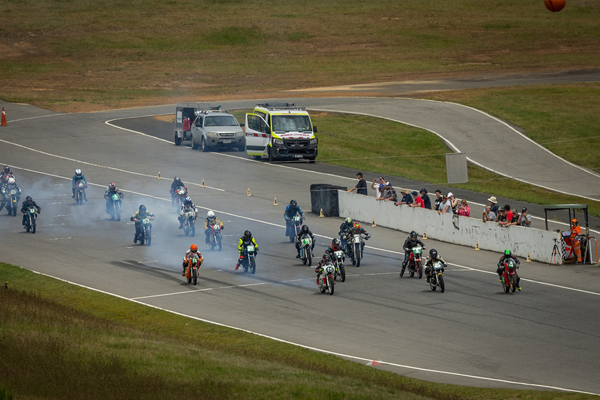 After the 75th race in a jam-packed program came to an end, 26 official Australian champions had been decided in the Hartwell Motorcycle Club-promoted event – some classes going right down to the wire on a circuit that’s tailor-made for historic road racing.