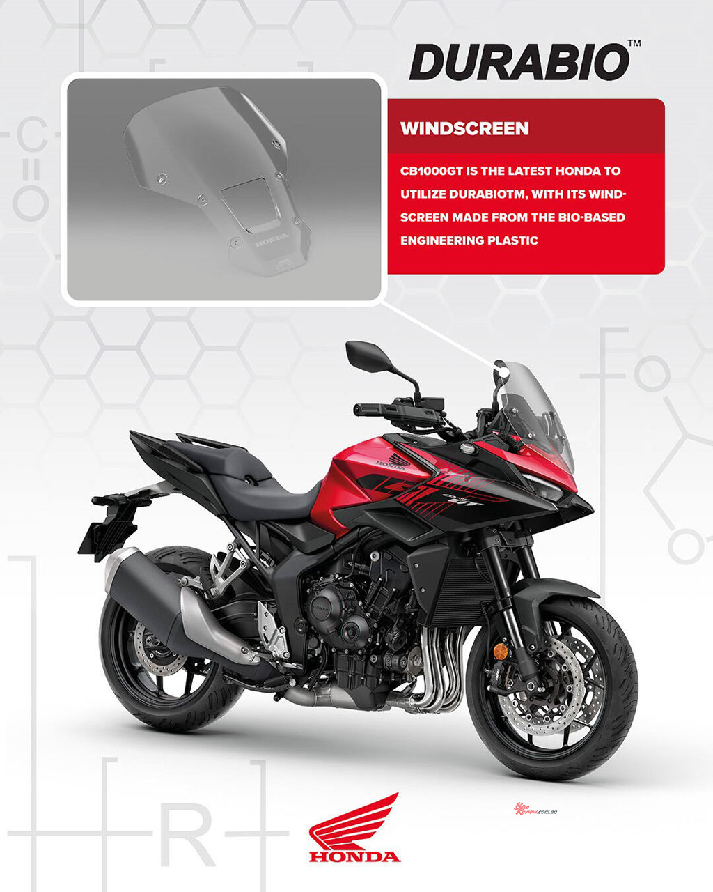 Early applications have already impressed the European motorcycle press. Honda now integrates DURABIO™ into the bodywork and windscreens of several key models, including the CRF1100L Africa Twin, NT1100, NC750X, CB1000GT, and its premium scooters, the X-ADV and Forza 750.