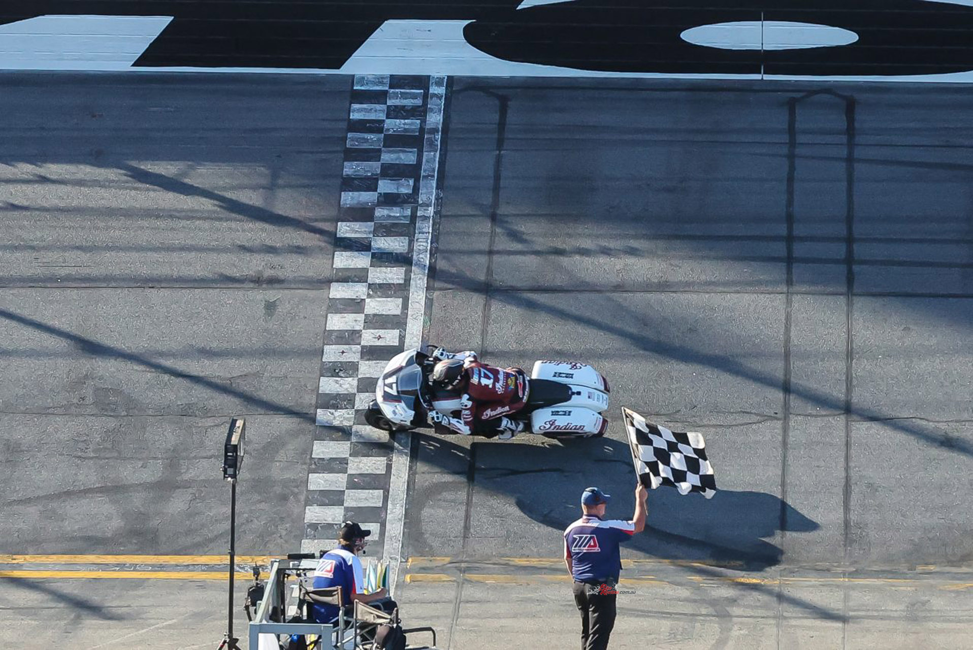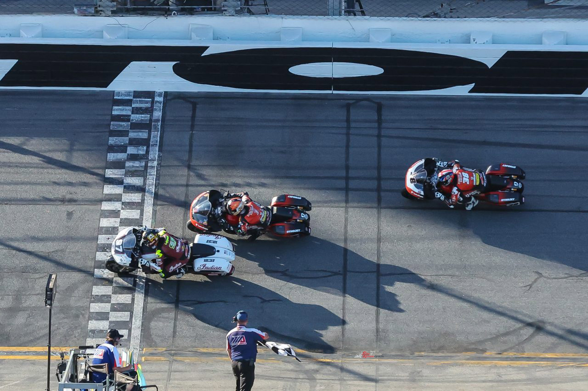 The second race of the weekend again saw the Indian team at the front of the action. Gillim initially led and began opening a gap before a mechanical issue forced him out of the race. Herfoss capitalised on the opportunity, fighting through a close battle with Harley-Davidson riders before powering his #17 Indian Challenger to victory, securing his first career win at Daytona.
