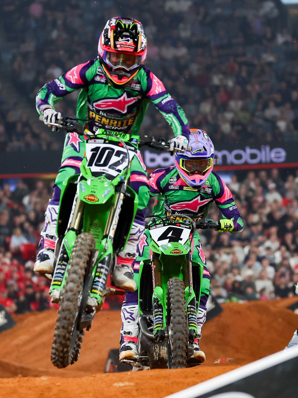 If any of you watched the AUSX Open on the weekend you would have seen that Penrite Racing Empire Kawasaki celebrated its first-ever win at the 2025 AUSX Open, with Cole Thompson delivering a 1-3 scorecard to claim the SX2 victory inside Marvel Stadium. Press: KMA Photos: I.D.Media